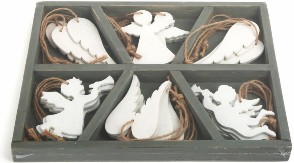 Krásná sada 18 ks vánočních ozdob v bílé barvě s motivem andělů a andělských krídel. Německá firma Legler zaměřená na výrobu kvalitních dřevěných hraček od roku 1996. Všechny dřevěné hračky značky small foot mají označení CE a jsou vyráběny dle evropské normy pro bezpečnost hraček EN 71. Použité barvy jsou speciálně vyvinuty pro dřevěné hračky a jsou odolné i proti slinám dětí. Dřevo, které se používá pro tyto hračky, většinou pochází z lesnických společností zapojených do zalesňování. To nabízí všem zákazníkům možnost přispět k zachování přirozeně rostoucích lesů. Dřevěné hračky small foot jsou zářivě barevné produkty, které jsou vyrobeny převážně z přírodních surovin - dřeva. Dětem dělají radost od útlého věku, rozvíjí jejich hmatové a smyslové dovednosti. Cílem značky small foot je podporovat duševní a fyzický vývoj dětí.