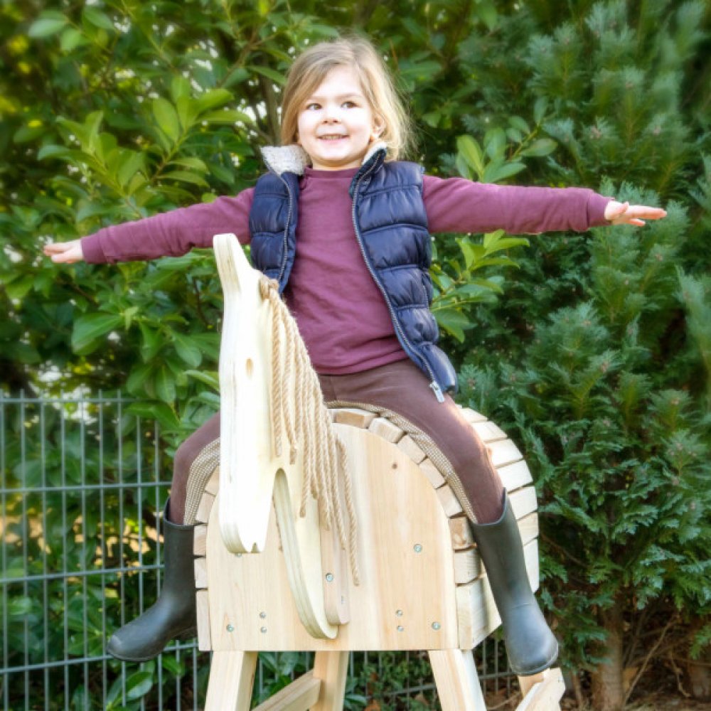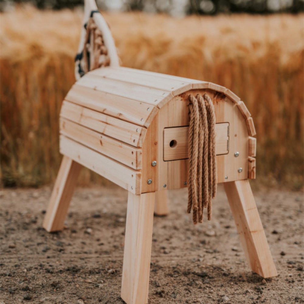 Small Foot Dřevěný kůň Odolný vůči každému počasí, může být individuálně stylizován. Hříva a ocas jsou vyrobeny ze sisalového vlákna, takže je můžete zaplétat. Kůň má zabudovaný stupínek pro lehčí nasedání, šikmé nohy pro stabilitu – bezpečnost. V břiše koně rozsáhlý úložný prostor s odklopnými dveřmi. Ohlávka koně je také součástí balení. Dřevěný kůň je nejlepším dárkem pro malé koňáky! Děti se m...