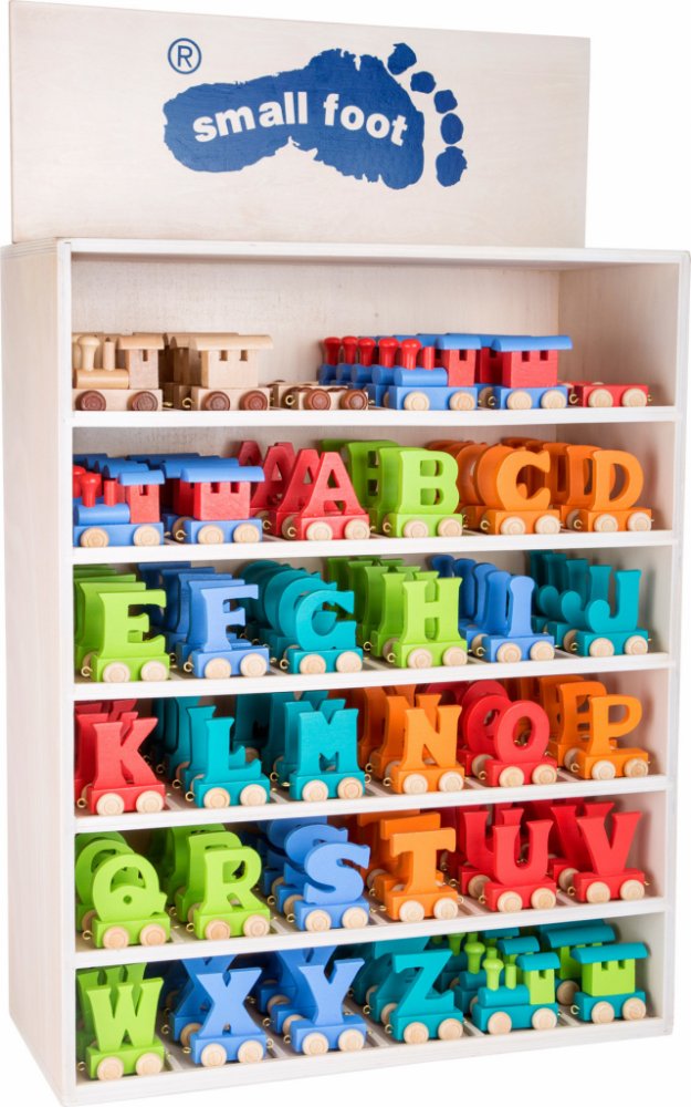 Vytvořte vláček na vláčkodráhu sestavený z písmen např. jména Vašeho dítěte. Vláček je vhodny na všechny druhy vláčkodráh. Písmenka jsou bez diakritiky. Cena je uvedena za 1 kus vagónku. Německá firma Legler zaměřená na výrobu kvalitních dřevěných hraček od roku 1996. Všechny dřevěné hračky značky small foot mají označení CE a jsou vyráběny dle evropské normy pro bezpečnost hraček EN 71. Použité barvy jsou speciálně vyvinuty pro dřevěné hračky a jsou odolné i proti slinám dětí. Dřevo, které se používá pro tyto hračky, většinou pochází z lesnických společností zapojených do zalesňování. To nabízí všem zákazníkům možnost přispět k zachování přirozeně rostoucích lesů. Dřevěné hračky small foot jsou zářivě barevné produkty, které jsou vyrobeny převážně z přírodních surovin - dřeva. Dětem dělají radost od útlého věku, rozvíjí jejich hmatové a smyslové dovednosti. Cílem značky small foot je podporovat duševní a fyzický vývoj dětí.