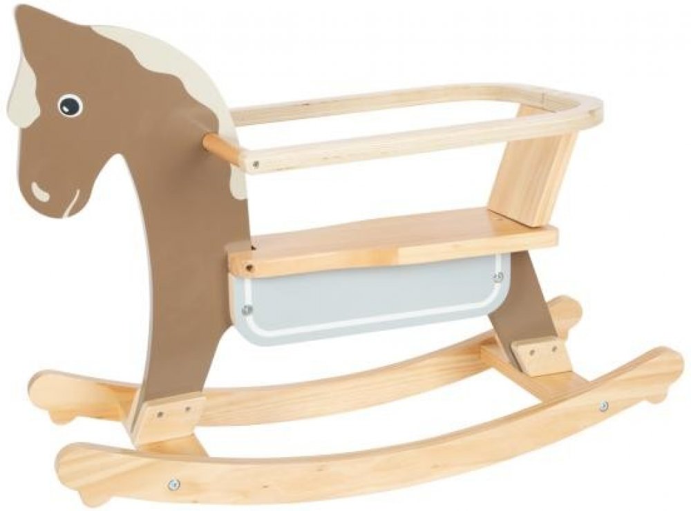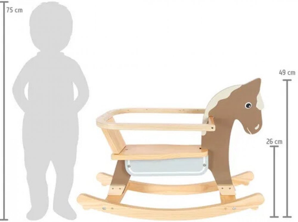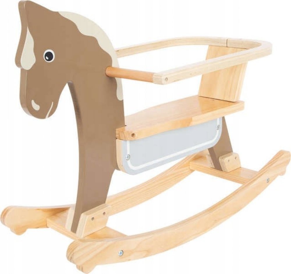 Vzhůru do sedel a cvalem kupředu! Houpací koník může dětem pomoci zesílit, rozvíjet koordinaci pohybů a rovnováhu. Pro zajištění maximální bezpečnosti je vybaven dorazy a opěradlem s hrazením, které lze snadno odejmout, jakmile dítě povyroste. Hračka je vyrobena z kombinace odolné překližky a masivního dřeva. Dává přitom vyniknout přírodním odstínům, a zútulní tak každý dětský pokojíček. Výrobek vyžaduje montáž, dodáváno s detailním návodem k sestavení.Hlavní vlastnosti:opěradlo s hrazenímodolné dřevěné provedenívýška sedla 26 cmnosnost max. 50 kg Tento moderní houpací kůň je skvělým doplňkem do dětského pokoje. Je vyroben z masivního dřeva a má robustní konstrukci. Díky svému minimalistickému tvaru a přírodním barvám je tento houpací kůň také vizuálním lákadlem. Vysoce kvalitní povrchová úprava Robustní konstrukce Vysoký podíl viditelně masivního dřeva Rukojeti pro stabilitu Vysoké opěradlo pro větší pohodlí Mechanismus zabraňující převrácení Prevence bezpečnosti Odnímatelný ochranný kroužek pro mladší děti Zahrnutí kroužku pro větší bezpečnost Snadno odnímatelný ochranný kroužek pro starší děti Přátelský obličej a kouřově modré sedlové patro kombinuje zábavu, hry a motorický trénink Vhodné pro dívky i chlapce Ideální dárek k narozeninám nebo Vánocům Malý houpací koník na nožičkách se zábradlím Nasedněte do sedla a cválejte vpřed. Houpací koník může dětem pomoci posílit, rozvíjet koordinaci pohybů a rovnováhu. Pro maximální bezpečnost je vybaven zarážkami proti nárazu a opěradlem se zábradlím, které lze snadno odstranit, když je dítě starší. Hračka je vyrobena z kombinace odolné překližky a masivního dřeva, zvýrazňuje přírodní odstíny a zútulní každý dětský pokojíček. Výrobek vyžaduje montáž, dodává se s podrobným návodem k sestavení. Hlavní vlastnosti: Dětská postýlka je vyrobena z kvalitního materiálu, který je součástí balení: Opěradlo se zábradlím Odolná dřevěná konstrukce Výška sedla 26 cm Nosnost je 50 kg Německá společnost Legler se věnuje výrobě vysoce kvalitních dřevěných hraček již od roku 1996. Všechny dřevěné hračky Small Foot jsou označenya vyrobeny v souladu s evropskými normami pro bezpečnost hraček. Parametry: Rozměry: 70 x 32 x 49 cm Nosnost: 50 kg Výška sedla: 26 cm Materiál: dřevo, kov > Doporučený věk: 12m+ Tento moderní houpací kůň zaujme kvalitním zpracováním, stabilní konstrukcí a vysokým viditelným obsahem masivního dřeva. Také vizuálně je tato klasika mezi dřevěnými hračkami poutavá díky svému zmenšenému tvaru a grafice v přírodních barvách! Madla, vysoké opěradlo, zarážky proti převrácení na běhounech a odnímatelný ochranný kruh poskytují malým jezdcům oporu a bezpečí! Přiložený ochranný kroužek poskytuje menším dětem potřebnou bezpečnost a zabraňuje jejich sklouznutí z houpacího koně do strany. Pro starší děti lze ochranný kroužek snadno vyjmout, takže se dřevěný koník stane dlouholetým společníkem na mnoho let. Houpací kůň s přátelským obličejem a kouřově modrou dečkou na sedle kombinuje zábavu a hru s pohybem a tréninkem motoriky. Skvělý dárek pro holky a kluky k narozeninám nebo k Vánocům.