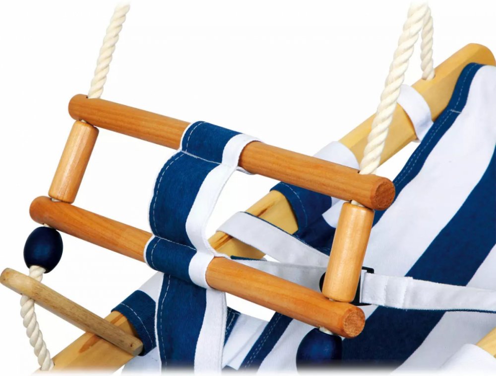Čistou relaxaci a radost ze souměrného pohybu zažijí nejmenší děti na této houpačce z dohladka broušených masivních tyček. Pevný textil v bílé a modré nabízí pohodlné ležení, dokonce máma a táta závidí odpočinkovou zónu. Bezpečnostní páska a látkový pruh mezi nohama dítě bezpečně udrží. Nosnost max. 25 kg. Německá firma Legler zaměřená na výrobu kvalitních dřevěných hraček od roku 1996. Všechny dř...
