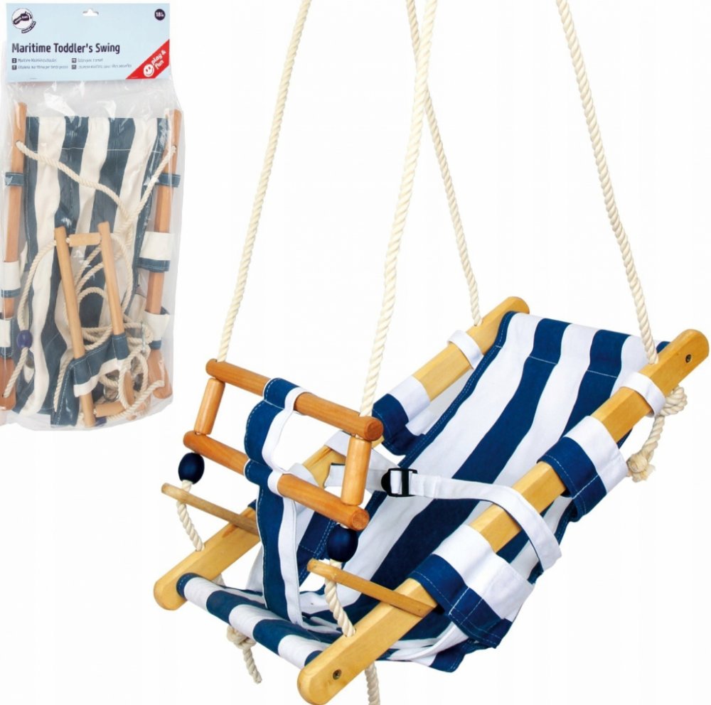 Čistou relaxaci a radost ze souměrného pohybu zažijí nejmenší děti na této houpačce z dohladka broušených masivních tyček. Pevný textil v bílé a modré nabízí pohodlné ležení, dokonce máma a táta závidí odpočinkovou zónu. Bezpečnostní páska a látkový pruh mezi nohama dítě bezpečně udrží. Nosnost max. 25 kg. Německá firma Legler zaměřená na výrobu kvalitních dřevěných hraček od roku 1996. Všechny dřevěné hračky značky small foot mají označení CE a jsou vyráběny dle evropské normy pro bezpečnost hraček EN 71. Použité barvy jsou speciálně vyvinuty pro dřevěné hračky a jsou odolné i proti slinám dětí. Dřevo, které se používá pro tyto hračky, většinou pochází z lesnických společností zapojených do zalesňování. To nabízí všem zákazníkům možnost přispět k zachování přirozeně rostoucích lesů. Dřevěné hračky small foot jsou zářivě barevné produkty, které jsou vyrobeny převážně z přírodních surovin - dřeva. Dětem dělají radost od útlého věku, rozvíjí jejich hmatové a smyslové dovednosti. Cílem značky small foot je podporovat duševní a fyzický vývoj dětí.