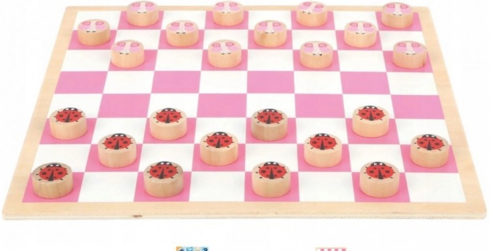 Zde jsou dáma, která povzbudí malé hráče ke hře! Legrační berušky a motýli se ve hře používají jako pěšáci. Po bílé a růžové tabuli bude "lítat" pěkný hmyz.
