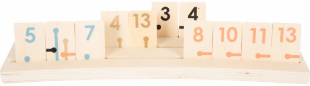 Klasická strategická hra ze dřeva v moderním, "dospělém" motivu se sofistikovanými zlatými detaily, trendy pastelovými barvami a přírodním dřevem. Vysoce kvalitní dřevěné herní dílky, které mají kontrastní potisk a symboly, díky kterým je lze jednoduše rozeznat. Dřevěný držák herních dílků je mírně zahnutý, chrání tak před nakukováním protihráčů. Hra je zabalena v odolném a kvalitním lepenkovém boxu, díky kterého můžete hru jednoduše uskladnit. Podporuje rozvoj soustředěnosti a pozornosti. Skvěle se hodí k ostatním hrám ze série "Gold Edition". Hra vypadá pěkně i jako dekorace. Jednoduchá hra nadchne hráče všeho věku. Hlavní vlastnosti: dřevěná rodinná hra trénuje pozornost a soustředěnost krásná barevná kombinace a viditelné dřevo Zkrácený návod hry:Před začátkem hry položte hrací dílky na stůl, číslicemi dolů. Každý hráč si vezme jeden dílek. Začíná hráč s nejnižším číslem. Pokud hrají 2 hráči, každý si vytáhne 10 hracích dílků. Pokud hrají 3 až 4 hráči, každý si vytáhne 7 hracích dílků. Tyto dílky si poté rozložte na své stojánky tak, aby na ně ostatní hráči neviděli. Zbývající kameny položte na stranu. Stavějte tercie a postupky. Dílky žolíků můžete použít v jakékoliv kombinaci pro tercie i postupky. Pro první vyložení potřebujete alespoň 30 bodů. V každé kombinaci můžete použít pouze jednoho žolíka. Pokud dílky vyložit nemůžete, vezměte si dílek z dobíracího balíčku, jinak jedno kolo stojíte. Pokud v příštím kole opět nemůžete vyložit, vezměte si dílek navíc... Dokumentace: návod ke hře Rummy Gold Edition (CZ)návod ke hře Rummy Gold Edition (SK) . Rozměry: 27x7.5x1 cm