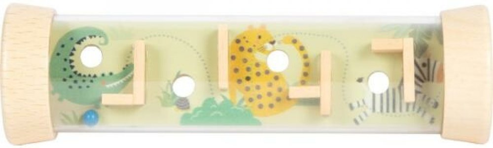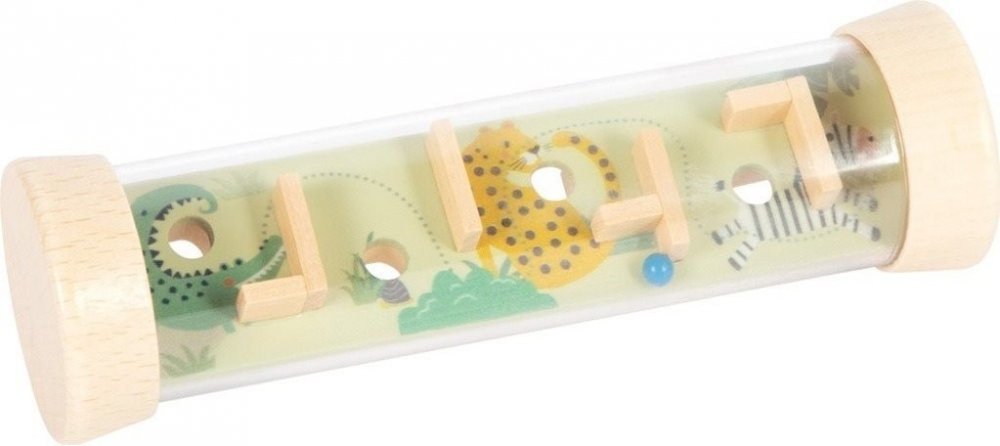Oboustranná hra na trpělivost s kuličkovým bludištěm, kterou lze přeměnit na rytmickou a chrasticí hračku! Kuličkové bludiště v robustním průhledném tubusu je především výzvou pro motorické dovednosti malých vynálezců, když 4 dřevěné kuličky kutálející se uvnitř obratně manévrují při plnění úkolů v bludišti. Na každé straně čekají na vyřešení dvě různá dřevěná bludiště. Láskyplný dětský design s divokými zvířaty, jako je zebra, žirafa, lev, krokodýl a spol. navíc hru vizuálně ozvláštňuje a podněcuje představivost. Díky dřevu, které se dobře drží v ruce, a velikosti vhodné pro dětské ruce je puzzle zábavným způsobem trávení času. Ideální na doma, na cesty nebo jako suvenýr. Zajímavé puzzle, které potěší děti od 5 let a zaujme i dospělé. Trénuje zručnost, soustředění a trpělivost a poskytuje dlouhotrvající zábavu.
