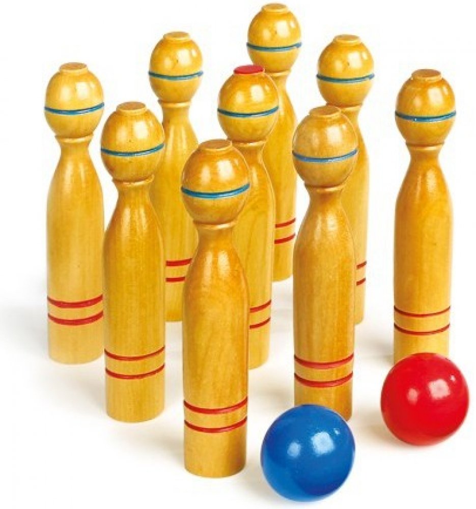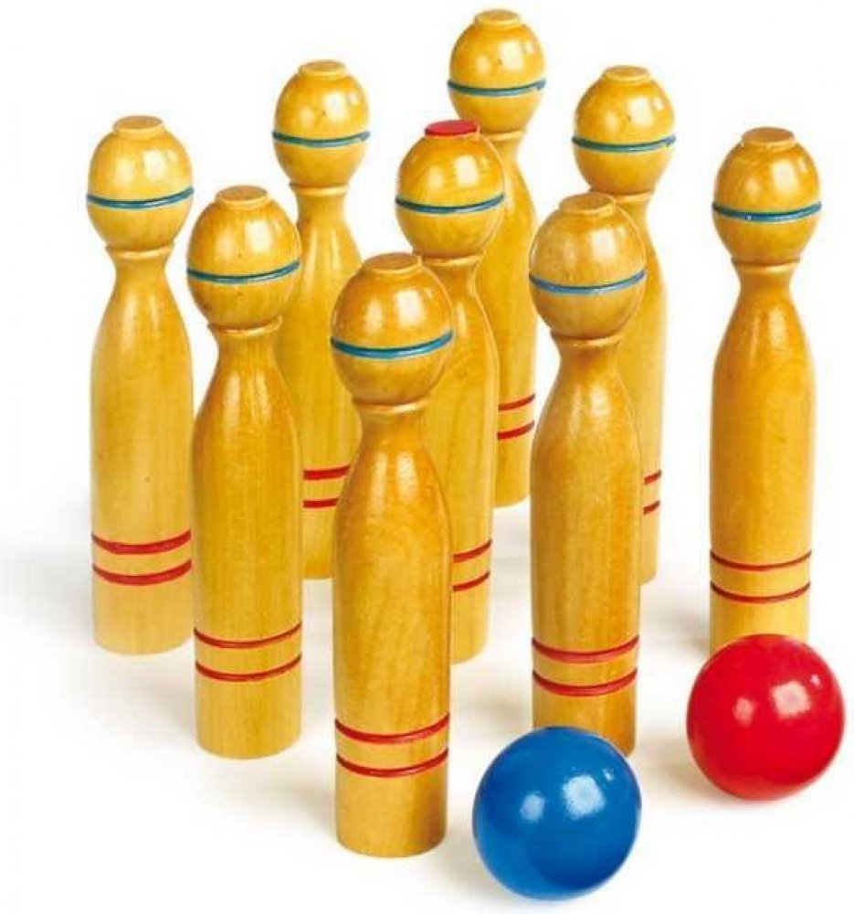 Kdo shodí všech devět kuželek? Tento set je vyroben ze 100% certifikovaného FSC® dřeva, zábavná hra pro všechny věkové kategorie! Devět kuželek je vyrobeno z pevného dřeva v moderním „Active“ designu, dvě dřevěné koule mají velikost tak akorát pro děti. Kuželky jsou vhodné do vnitřních i venkovních prostor. Kuželkový set je uložen v textilním pytlíku s poutky, můžete si jej tak vzít kamkoliv s seb...