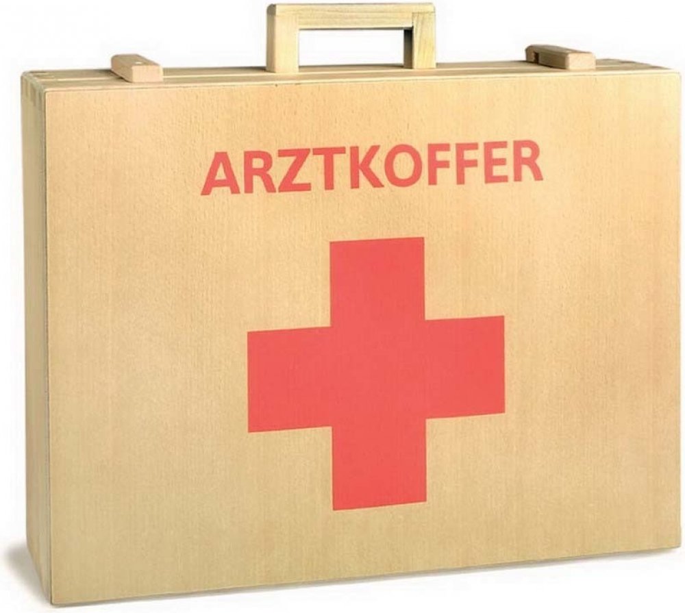 Kvalitní dřevěný kufřík s bohatým obsahem. Tento kufřík obsahuje vše, co lékař potřebuje: různé nástroje, pohotovostní telefon a dokonce i injekční stříkačky. Hlavní vlastnosti: lékařská souprava se spoustou dřevěného lékařského vybavenípružné elastické pásky a oddělené přihrádky udrží léky a lékařské vybavení na místěklasické doktorské symbolypodporuje aktivní hraní a rozvíjí sociální dovednosti