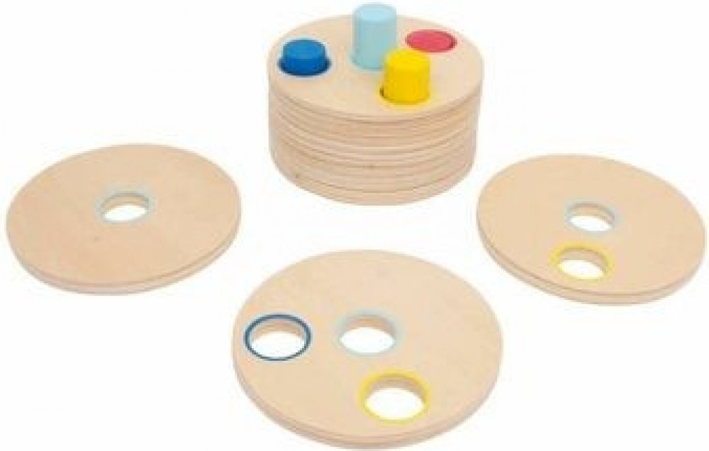 Dobře si prohlédni, přemýšlej, zkoušej a vhodně nasuň – skvělá nasouvací hra pro trénování motoriky a koordinace ruky a oka! 8 pevných kotoučů (tloušťka 1 cm) z jemně broušené překližky mají být nasunuty na barevné tyče. Vzhledem k tomu, že jsou tyče různých délek a každý kotouč má vždy o jeden otvor méně než předchozí, je pouze jedno řešení! Německá firma Legler zaměřená na výrobu kvalitních dřev...
