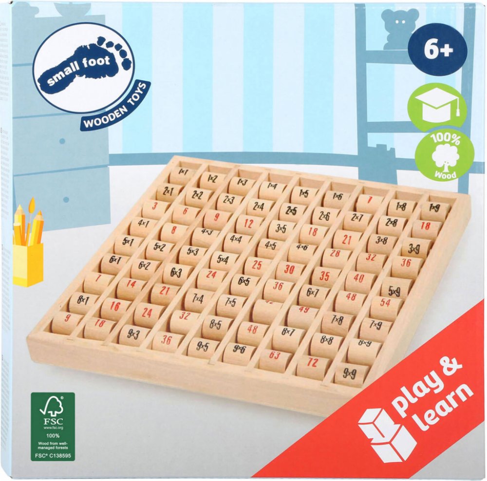 Učební pomůcka, která dětem pomáhá naučit se malou násobilku. Otáčejícími se válečky můžete měnit zadání příkladu nebo nalézt jeho výsledek. Německá firma Legler zaměřená na výrobu kvalitních dřevěných hraček od roku 1996. Všechny dřevěné hračky značky small foot mají označení CE a jsou vyráběny dle evropské normy pro bezpečnost hraček EN 71. Použité barvy jsou speciálně vyvinuty pro dřevěné hračky a jsou odolné i proti slinám dětí. Dřevo, které se používá pro tyto hračky, většinou pochází z lesnických společností zapojených do zalesňování. To nabízí všem zákazníkům možnost přispět k zachování přirozeně rostoucích lesů. Dřevěné hračky small foot jsou zářivě barevné produkty, které jsou vyrobeny převážně z přírodních surovin - dřeva. Dětem dělají radost od útlého věku, rozvíjí jejich hmatové a smyslové dovednosti. Cílem značky small foot je podporovat duševní a fyzický vývoj dětí.