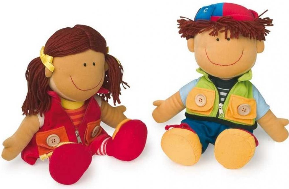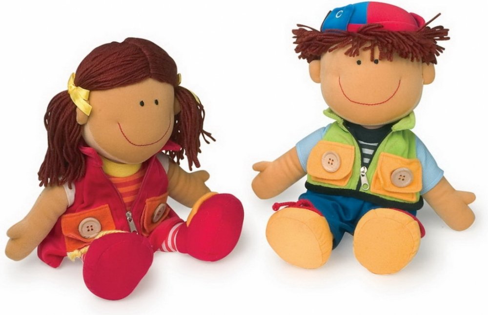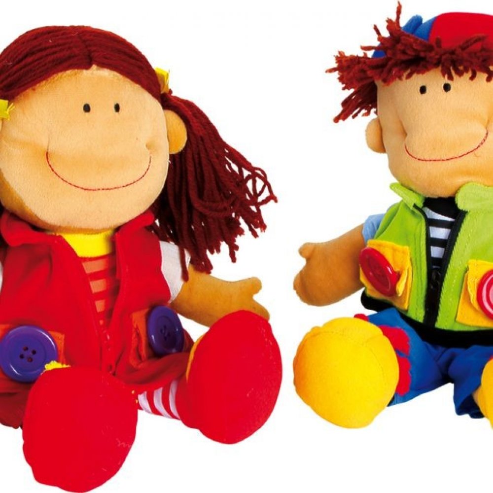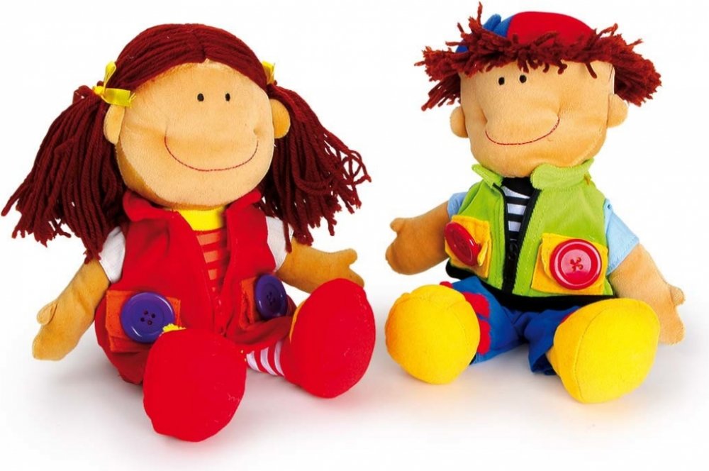 Omyvatelné oblečení panenek mají zip, knoflíky, tkaničky a suchý zip. Děti mohou cvičit motoriku svých prstíků. V ceně jsou obě panenky.
