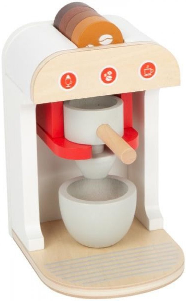 Kávovar s různě silnými kávovými zrny – možnost připravit espresso, cappuccino nebo latte rozvíjí představivost a hru na role.