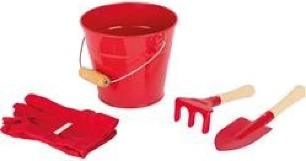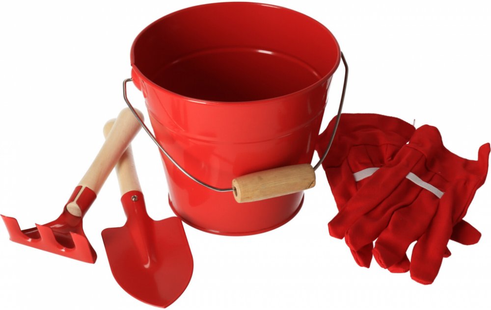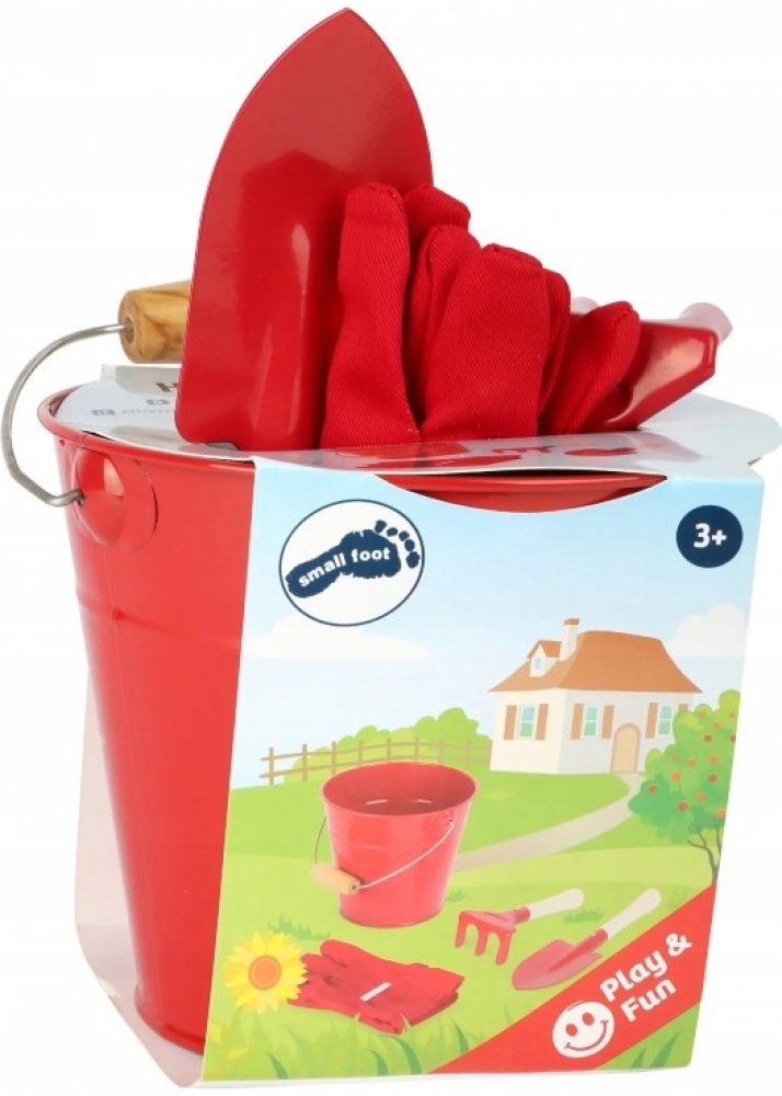 Small Foot sada zahradní nářadí s kyblíčkem červená
