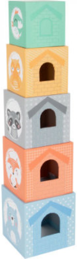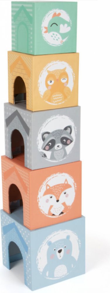 Skládaní je zábava! Pět kostek v trendy pastelových barvách, které mají také ilustraci zvířátek. Jen čekají, až je začnete skládat na sebe! Čtyři z kostek mají okýnko a dveře, ve kterých se mohou schovat postavičky zvířátek. Díky ilustraci na jedné ze stran děti poznají, jak by měly kostky správně složit. Skládání a třídění dětem pomůže rozvinout porozumění barvám a tvarům, také procvičí jejich mo...