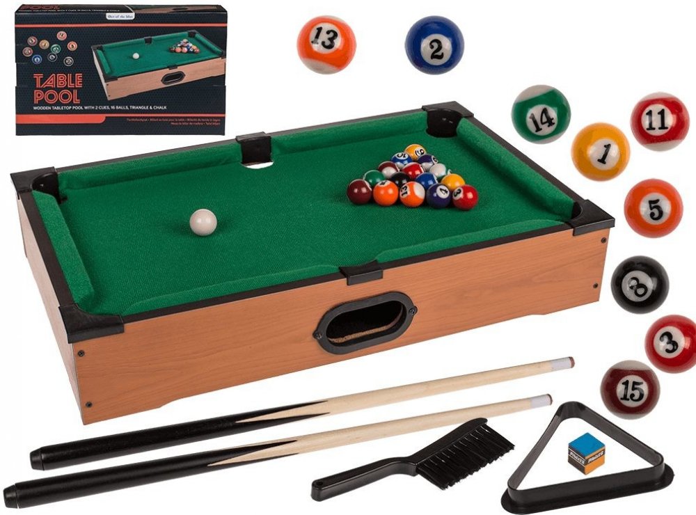 Tento malý kulečníkový stůl je určen pro zábavu a trénuje motoriku a koordinaci rukou a očí.