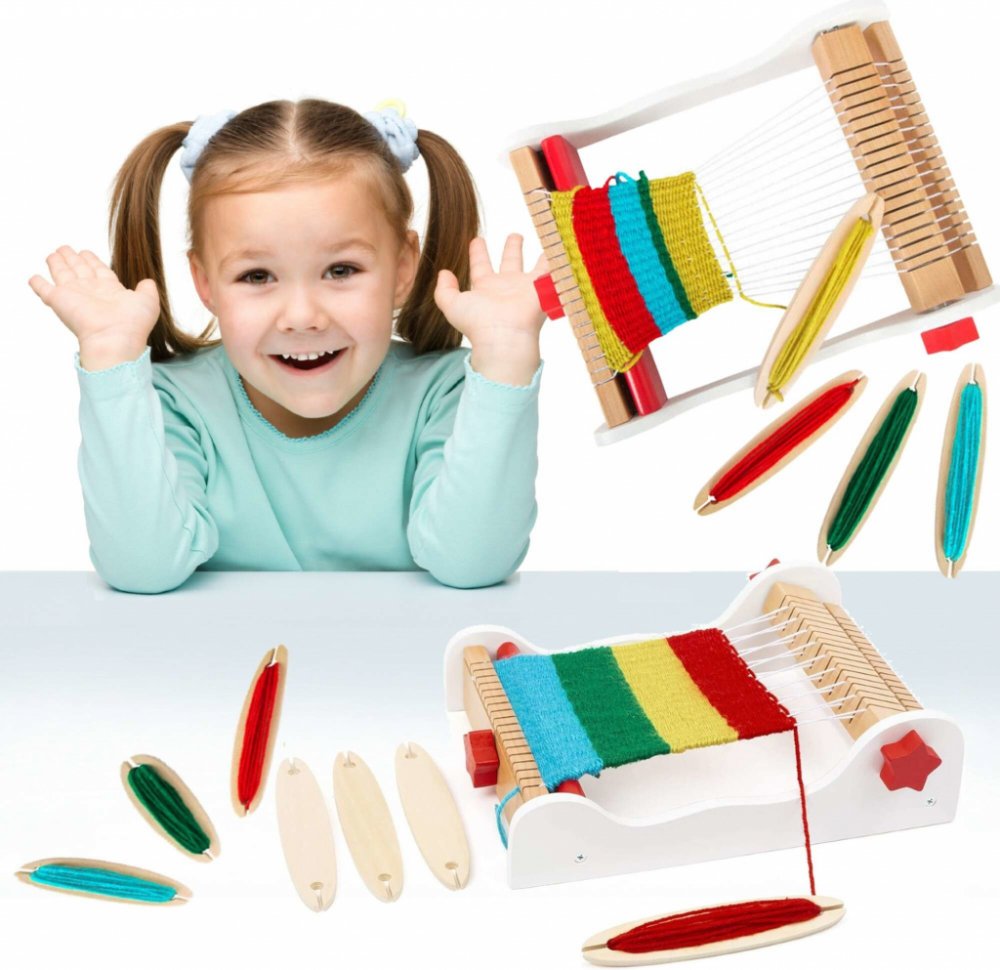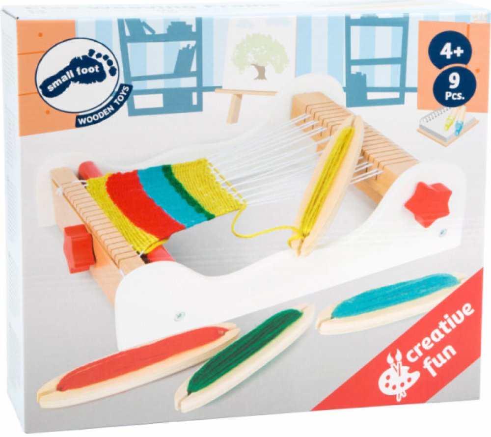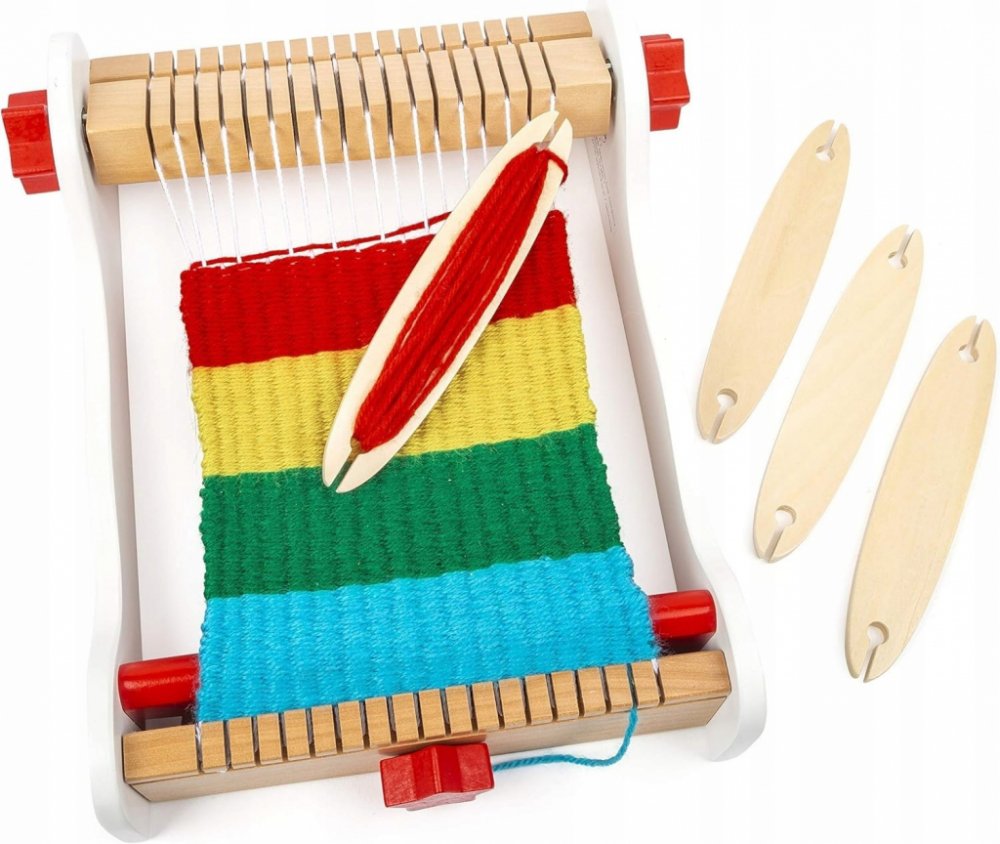 Pozor všechny kreativní děti! Tento dřevěný tkací rám je zvláště vhodný pro první umělecké výtvory dítěte. Tato sada obsahuje základní nitě a čtyři malé tkací špulky s navinutými různě zbarvenými vlněnými přízemi. Extra velký a hladce se ovládající napínací knoflík je ideální pro dětské ruce. Kreativní práce může začít okamžitě s obzvláště snadnou obsluhou tohoto prvního tkacího rámu. Je to skvělá...
