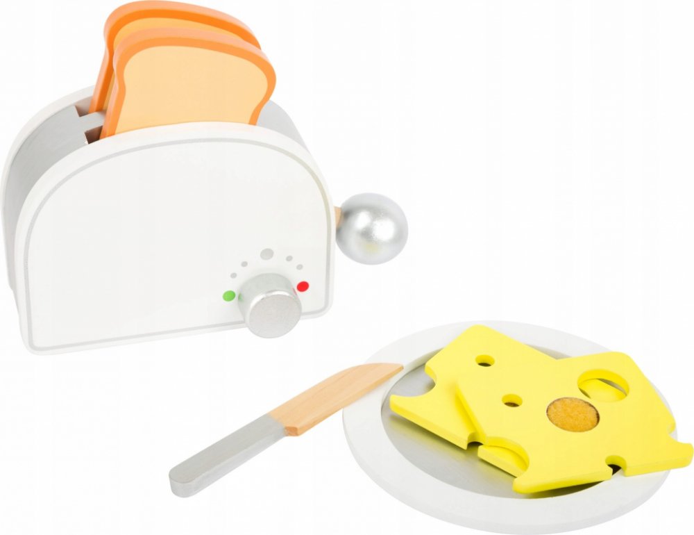 Snídaně je připravena! S tímto kompaktním dřevěným toustovačem je snídaně dvakrát zábavnější. Plátky toustů se opékají, dokud se pohyblivou rukojetí nevysunou a pak už jen stačí nahoru položit plátek sýra. Cvakající otočný knoflík je tlačítkem pro zapnutí a vypnutí. A teď je čas servírovat. Hlavní vlastnosti: sada obsahuje 5 kscvakající otočný ciferník