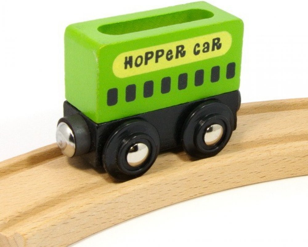 Vláček je vhodný na všechny druhy vláčkodráh. Lokomotiva může být součástí vláčku, který vytvoříte z vagónků písmenek abecedy.