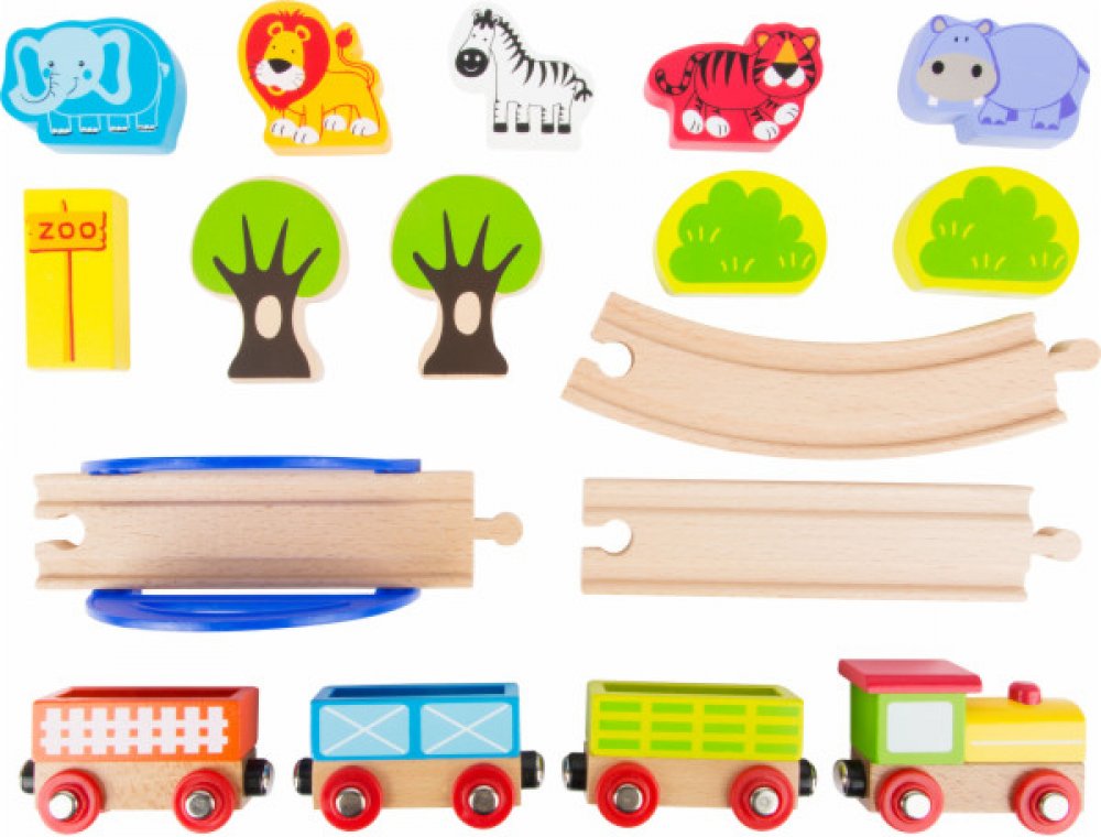 Vydejte se na dobrodružnou projížďku zoologickou zahradou. Dřevěná vláčkodráha Moje zoo nabízí dětem možnost vytvořit si vlastní hravý příběh plný zvířat, přírody a objevování. Součástí sady je vláček s vagónky, které lze snadno spojovat pomocí magnetů, dále stromy, keře, můstek, cedule zoo a figurky zvířat, které se stanou hlavními hrdiny této okružní jízdy...