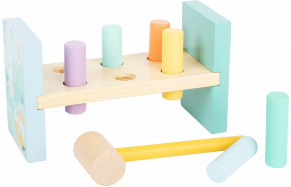 I zatloukání může být stylové! Se zatloukací hračkou v pastelových barvách si děti mohou změřit svou sílu. Klasická hra, která trénuje koordinaci ruka-oko a motoriku dětí. Zatloukačka má krásné barvy a ilustraci zvířátek. Po zatlučení všech kolíků hračku jednoduše otočte. Krásná zatloukací hračka je součástí produktové řady „Pastel“ a zaujme vysokým viditelným podílem dřeva a moderním zabarvením v...