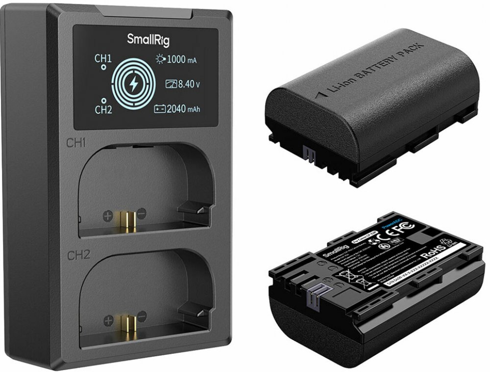 Kit obsahuje duální nabíječku a dvě baterie LP-E6P.Duální nabíječka dokáže nabíjet jednu nebo dvě baterie současně.LCD displej zobrazuje stav nabíjení, nabíjecí napětí, proud a kapacitu v reálném čase.Nabíječka je vybavena vestavěným USB kabelem, který umožňuje baterie nabíjet z libovolného USB zdroje. Navíc je vybavena vstupem USB-C, což umožňuje nabíjení přes USB adaptér, autonabíječku nebo powe...