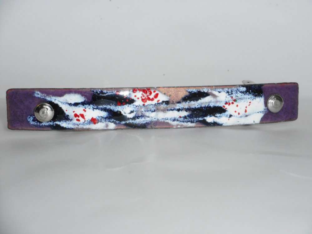 Smaltovaná spona do vlasů se zapínáním na kovovou sponu. Vhodná pro středně husté vlasy. Kovové zapínání francouzské kvality zn. "Made in France" nebo "Clip Paris".