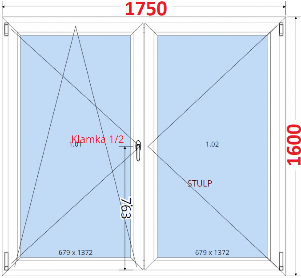 balkonové 175 cm 160 cm 97 kg dvoukřídlé