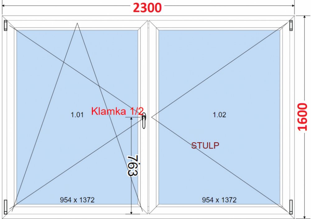 balkonové 230 cm 160 cm 119 kg dvoukřídlé