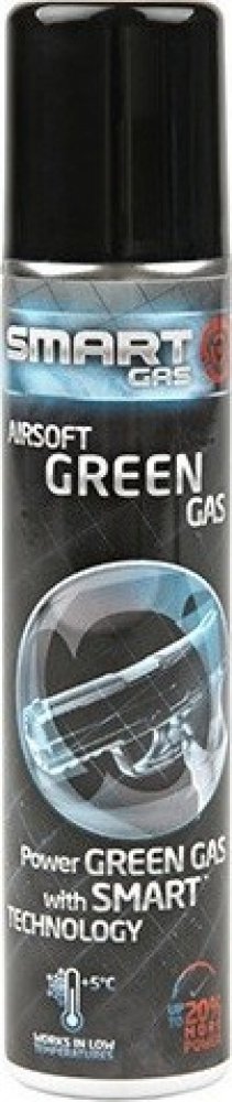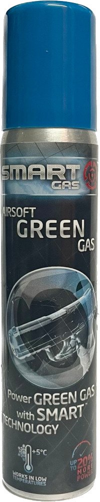 Hnací plyn Green Gas pro airsoft plynové zbraně. Plyn Smart Gas obsahuje také silikonovou složku, která zajišťuje hladký chod a udržuje vnitřní části zbraně promazané. Díky lepšímu složení tento plyn zajišťuje vyšší výkon zbraně a správnou funkci i při nižších teplotách.