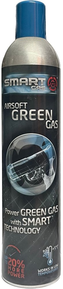 Hnací plyn Green Gas pro airsoft plynové zbraně. Plyn Smart Gas obsahuje také silikonovou složku, která zajišťuje hladký chod a udržuje vnitřní části zbraně promazané. Díky lepšímu složení tento plyn zajišťuje vyšší výkon zbraně a správnou funkci i při nižších teplotách.