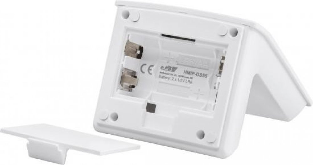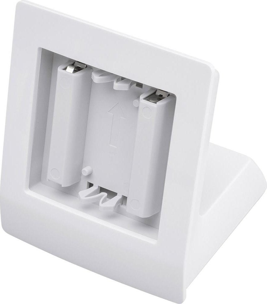 Pod krytem ve spodní části zařízení se nachází zásobník pro dva kusy tužkových napájecích baterií 1,5 V typu AA a stojánek tak může velmi dobře pracovat jako dokovací napájecí stanice i pro vložená zařízení bez napájecích baterií. Pokud je do Stojánku (HmIP-DS55) s bateriemi integrován bezdrátový bateriový prvek, bude navýšena pracovní doba této komponenty v důsledku použití baterií typu AA namísto běžně používaných baterií typu AAA přímo v zařízení.
