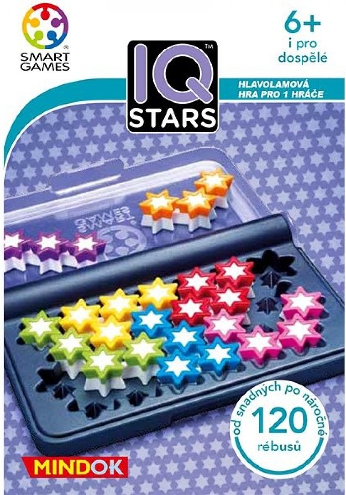 Společenská hra IQ Stars z edice Smart Games je hlavolamová hra, která může potrápit nejen malé hráče. Cílem hry je sestavit všechny barevné hvězdičky do hrací desky dle zvoleného zadání. Pro nalezení jediného správného řešení rozmístění hvězdiček je nutné být maximálně koncentorovaný a mít logické myšlení. Hra IQ Stars obsahuje 120 rébusů různé úrovně. Je určena pro jednoho hráče ve věku od šesti...