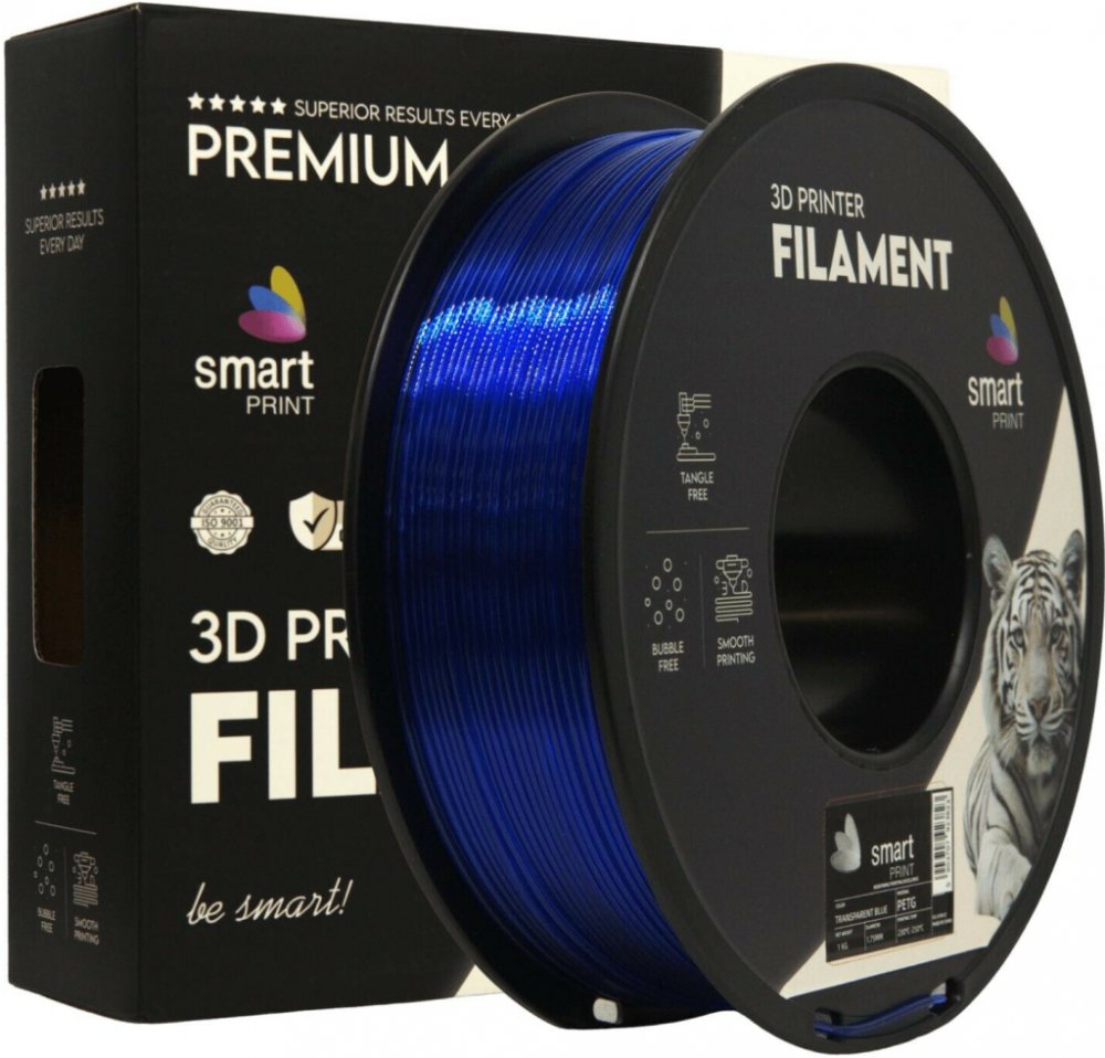 PETG filament Transparent Blue 1,75 mm – Smart Print | Odolnost, přesnost a snadný tisk