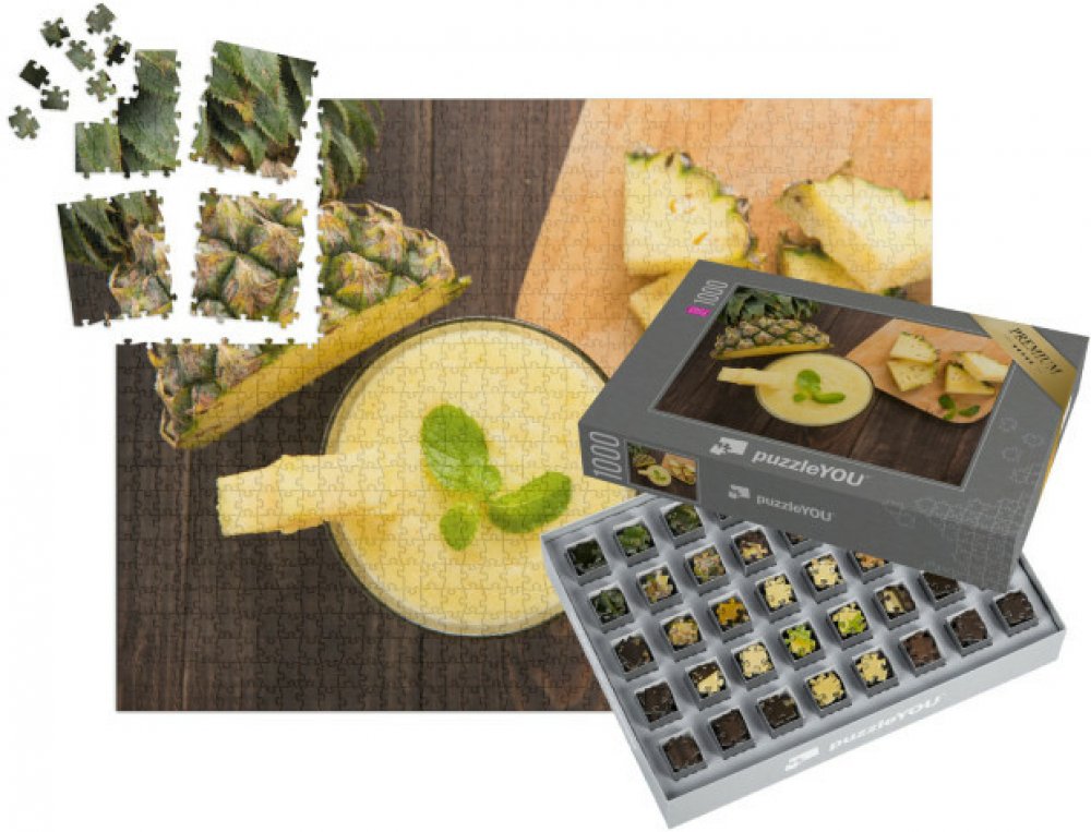 Skládačka SMART SORTED® | Puzzle 1000 dílků „Ananasové smoothie s čerstvým ananasem“ - Osobní dárek k narozeninám, svatbě, výročí, Vánocům, Dne matek nebo Dni otců. 48–2000 dílků a SMART SORTED 1000 dílků, tematická krabička s vlastním textem zdarma, česká výroba, kvalitní zpracování. Dnes objednáte, zítra odešleme.