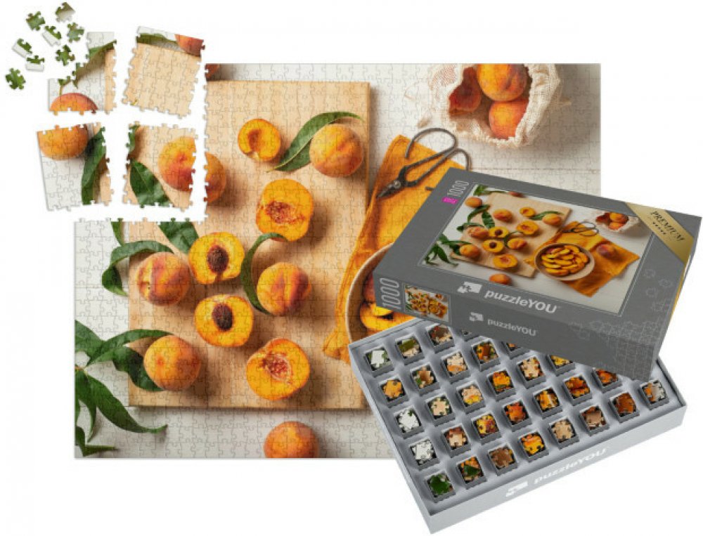 Skládačka SMART SORTED® | Puzzle 1000 dílků „Čerstvé broskve“ - Osobní dárek k narozeninám, svatbě, výročí, Vánocům, Dne matek nebo Dni otců. 48–2000 dílků a SMART SORTED 1000 dílků, tematická krabička s vlastním textem zdarma, česká výroba, kvalitní zpracování. Dnes objednáte, zítra odešleme.