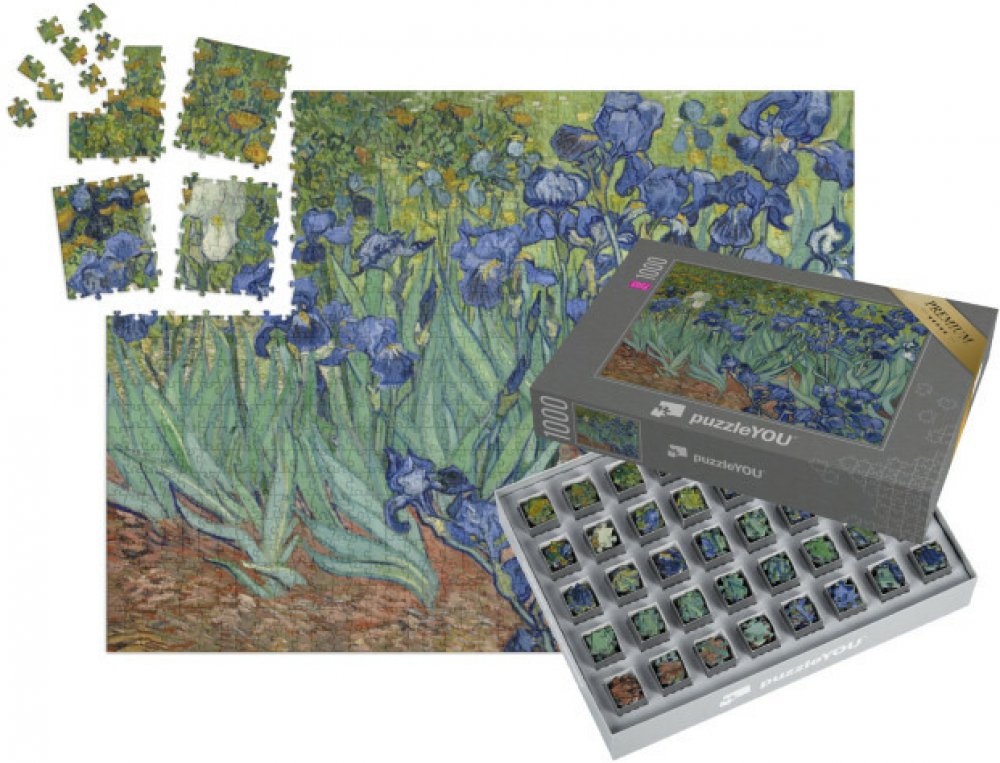 Skládačka SMART SORTED® | Puzzle 1000 dílků „Kosatce, Vincent van Gogh, 1889“ - Osobní dárek k narozeninám, svatbě, výročí, Vánocům, Dne matek nebo Dni otců. 48–2000 dílků a SMART SORTED 1000 dílků, tematická krabička s vlastním textem zdarma, česká výroba, kvalitní zpracování. Dnes objednáte, zítra odešleme.