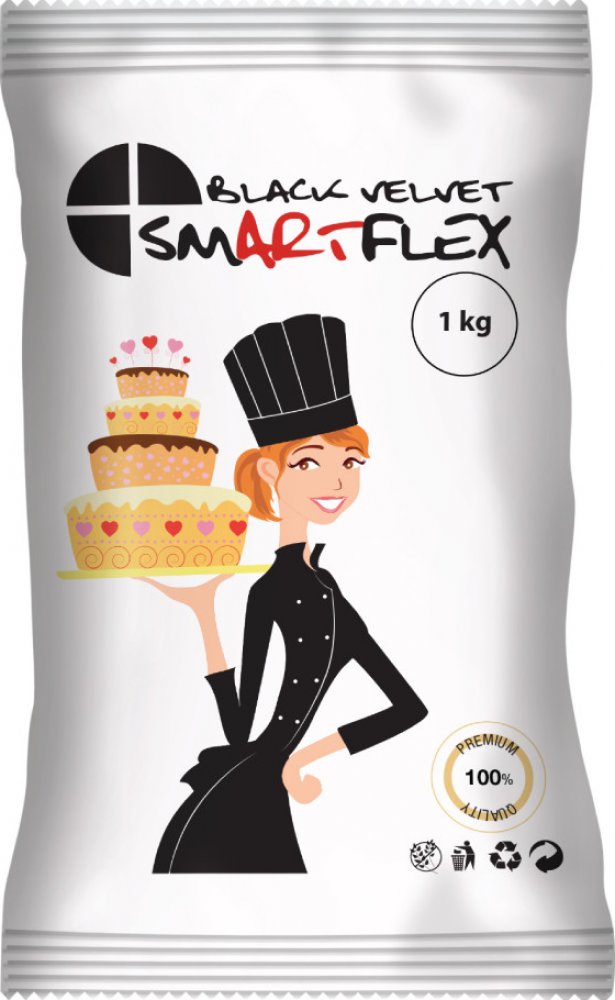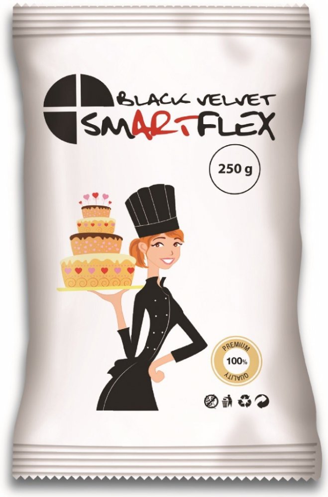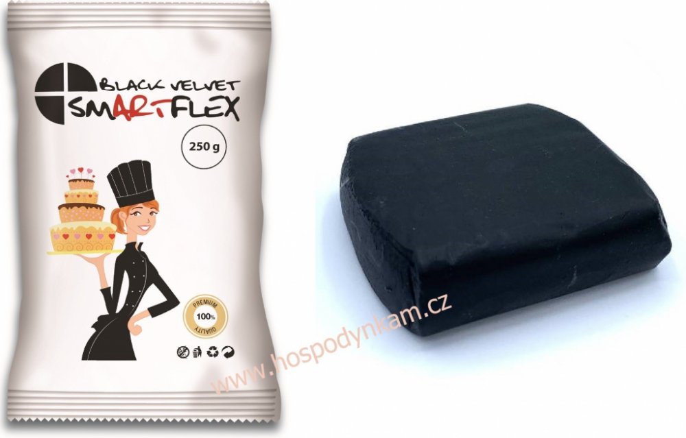 Černá, extra pružná hmota s vynikajícími vlastnostmi, vhodná zejména k potahování dortů a modelování figurek