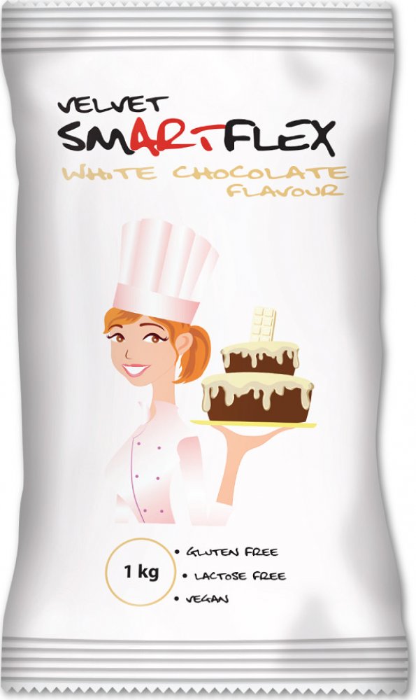 Smartflex Velvet bílá čokoláda 1 kg – potahovací hmotaSametově jemná potahovací hmota s příchutí bílé čokolády