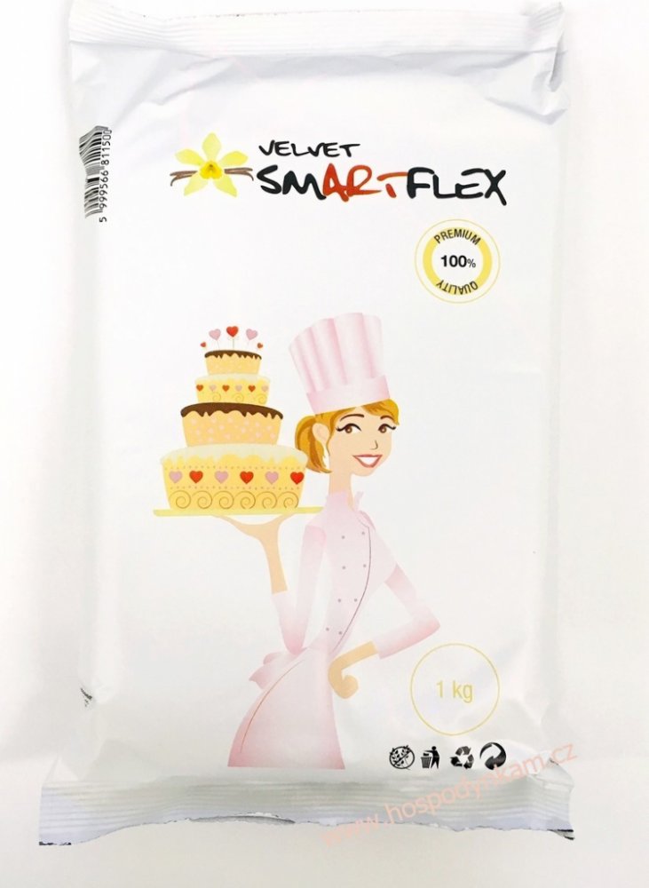 Smartflex Velvet vanilka je skvělou volbou pro každého, kdo hledá spolehlivou a univerzální potahovací hmotu s příjemnou chutí. Její vlastnosti oceníte při potahování dortů, kde se netrhá a krásně přilne ke korpusu, ale i při modelování složitějších dekorací, které díky pružnosti hmoty drží tvar a nesesedají. Pokud rádi experimentujete s barvami, bílý základ vám umožní namíchat si přesně ten odstín, který potřebujete - od jemných pastelů po výrazné tóny.