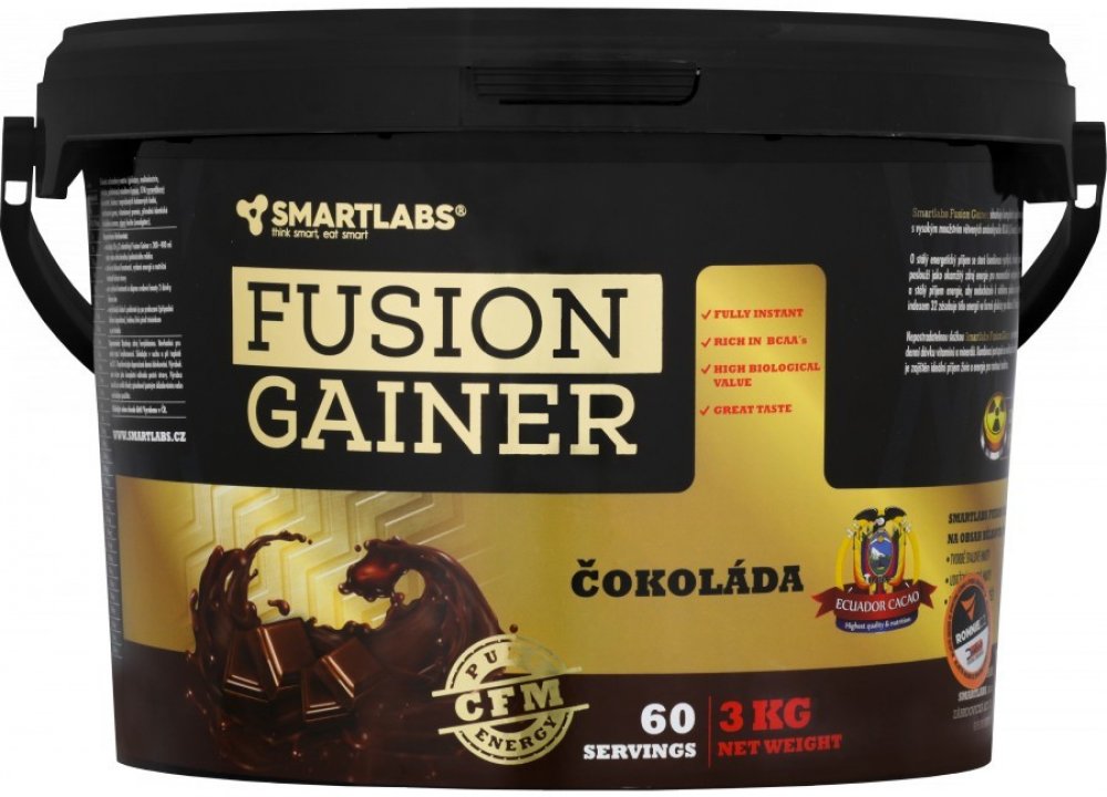 Nepostradatelnou složkou Smartlabs Fusion Gainer je vitamínový premix, který zajišťuje optimální denní dávku vitamínů a minerálů. Kombinací postupně se uvolňujících sacharidů a proteinů, vitamínů a minerálů je zajištěn ideální příjem živin a energie pro rostoucí svalstvo. Za účelem minimalizace růstu tělesného tuku obsahuje Smartlabs Fusion Gainer v jedné dávce (60g) pouze 1g tuku.
