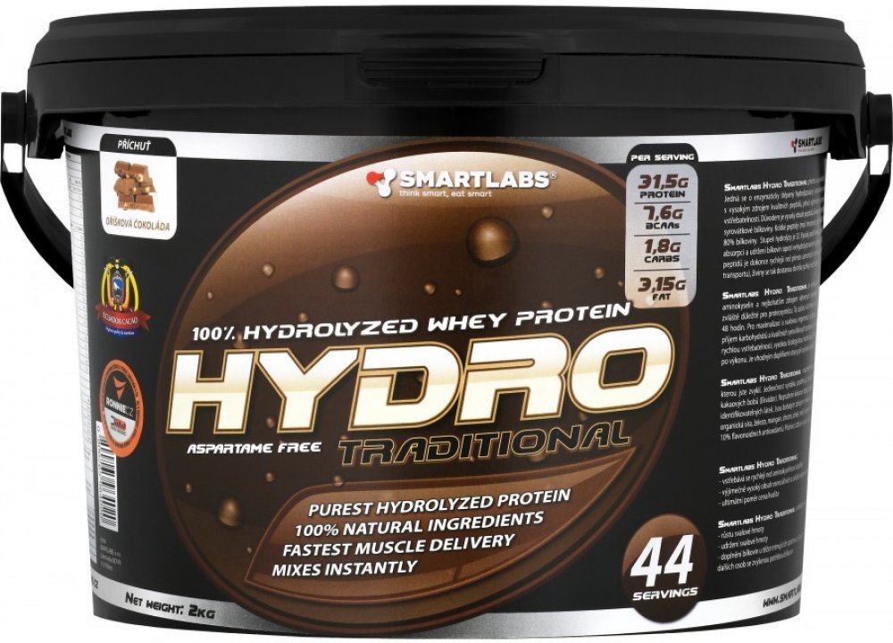 Smartlabs Hydro Traditional je vynikajícím zdrojem esenciálních aminokyselin a nejbohatším zdrojem větvených aminokyselin (BCAA), které jsou zvláště důležité pro proteosyntézu. Ta začíná 4-8 hodin po tréninku a trvá přibližně 48 hodin. Pro maximalizaci a svalovou regeneraci je proto v tomto období důležitý příjem karbohydrátů a kvalitních syrovátkových proteinů. Syrovátková bílkovina vyniká rychlou vstřebatelností, vysokou biologickou hodnotou a 100% využitelností zejména po výkonu. Je nezbytnou složkou pro výstavbu kvalitní svalové hmoty a vhodným doplňkem stravy při zvýšené svalové zátěži zajišťujíc její růst a potřebnou regeneraci.
