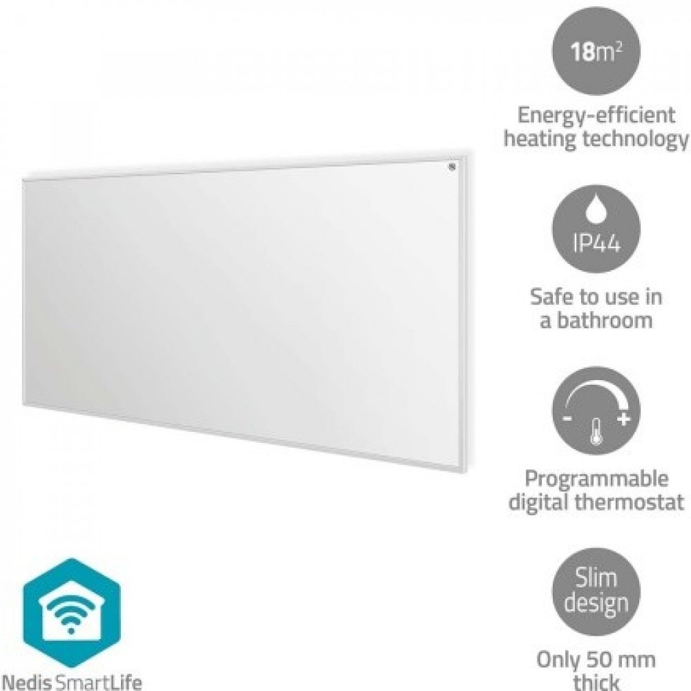 Infračervený panelový ohřívač Nedis Smart Wi-Fi je dokonalým řešením pro efektivní a účinné vytápění místností o velikosti až 18 m2. Díky svým pokročilým funkcím a výhodám nabízí toto topidlo vynikající výkon a pohodlí, které zajišťuje příjemné prostředí pro váš obývací pokoj, ale může být také použito v hobby místnosti. Infračervený panelový ohřívač Nedis Smart Wi-Fi využívá špičkovou technologii vytápění z uhlíkových krystalů, která zaručuje energeticky efektivní provoz a zároveň udržuje vaše účty za energii pod kontrolou. Vychutnejte si útulnou atmosféru bez rušivých zvuků nebo nepříjemných pachů, které jsou běžně spojovány s tradičními způsoby vytápění. Pro svůj provoz vytápění nevyžaduje univerzální plochý topný panel nic víc než elektrickou zásuvku. Panelové topení generuje přímé teplo pomocí infračerveného záření, které neohřívá okolní vzduch, ale všechny předměty v místnosti (kromě osob také stěny, strop, podlahu a nábytek), které pak postupně vyzařují uložené teplo do místnosti. Udržování požadované pokojové teploty je snadné s programovatelným digitálním termostatem.