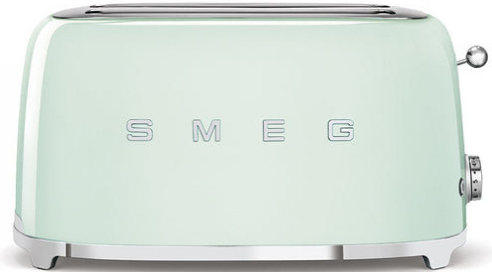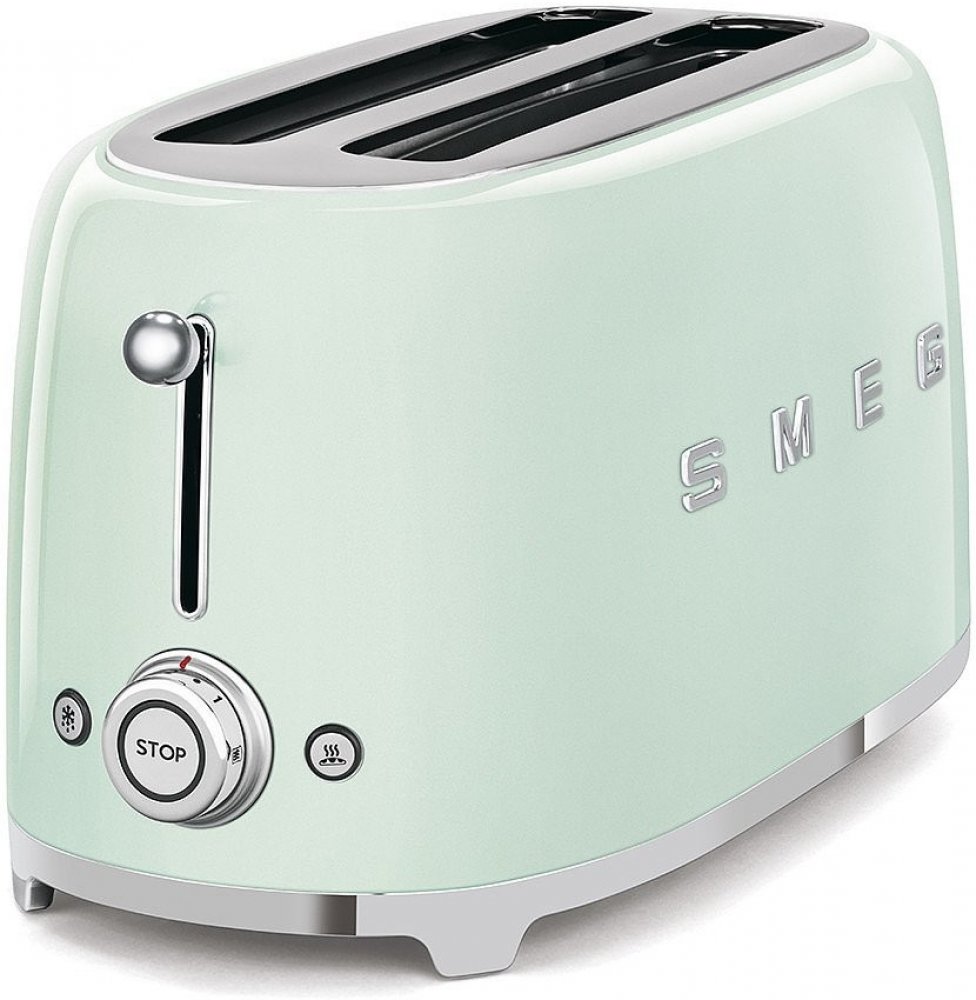 Retro toustovač Smeg TSF02PGEU, barva Pastelově zelená, 2 velké přihrádky na 4 tousty (36mm), automatické centrování plátků toustů, 6 stupňů opečení.
