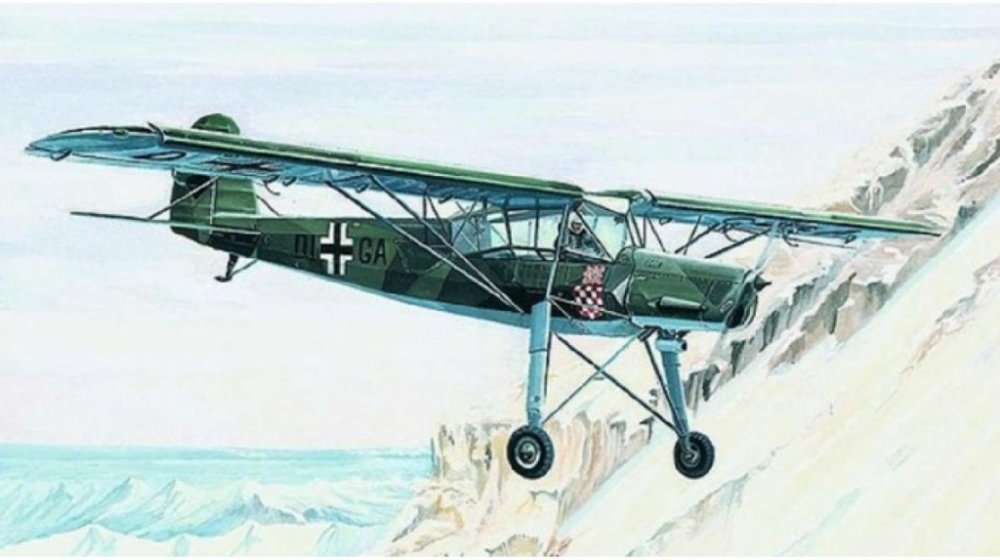 Směr Model Fieseler Fi156 Storch. Německý jednomotorový spojovací a průzkumný letoun.