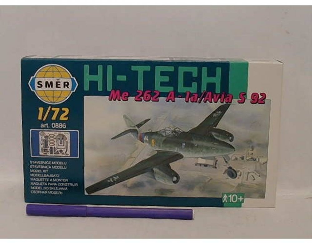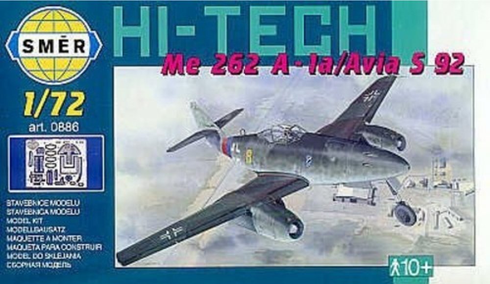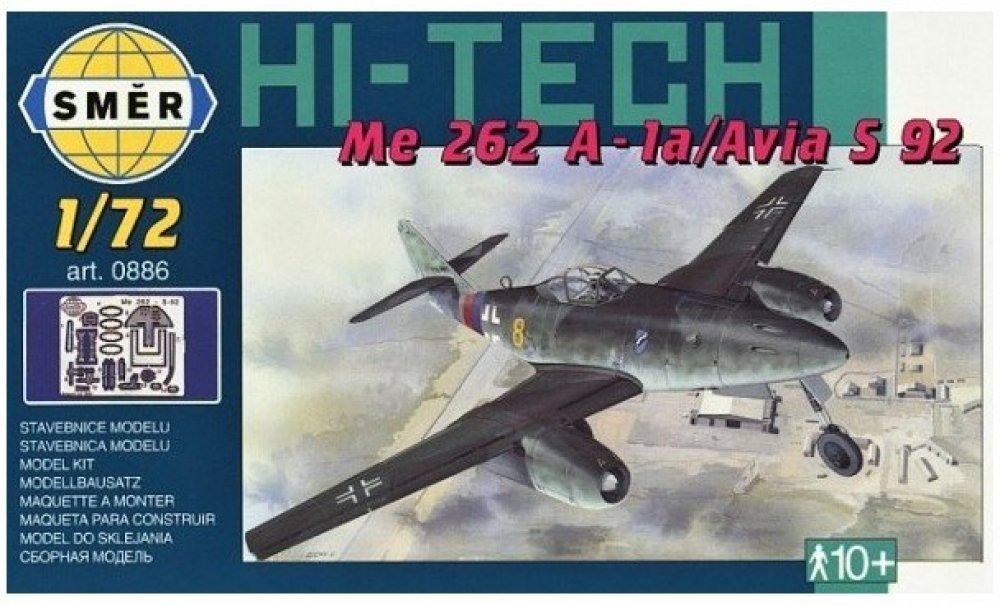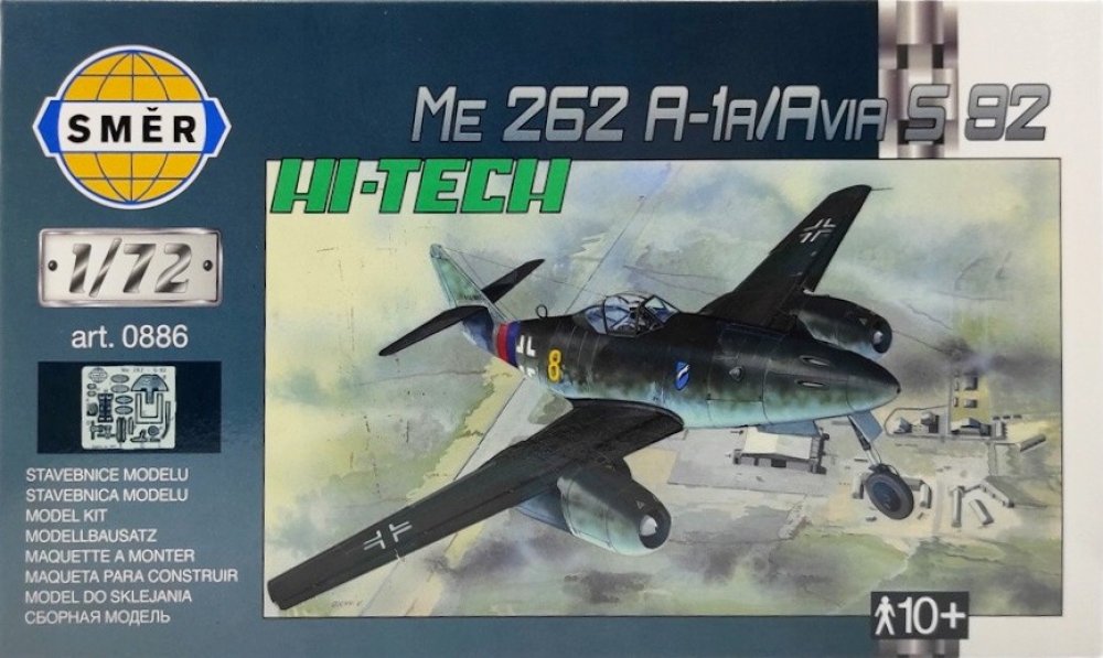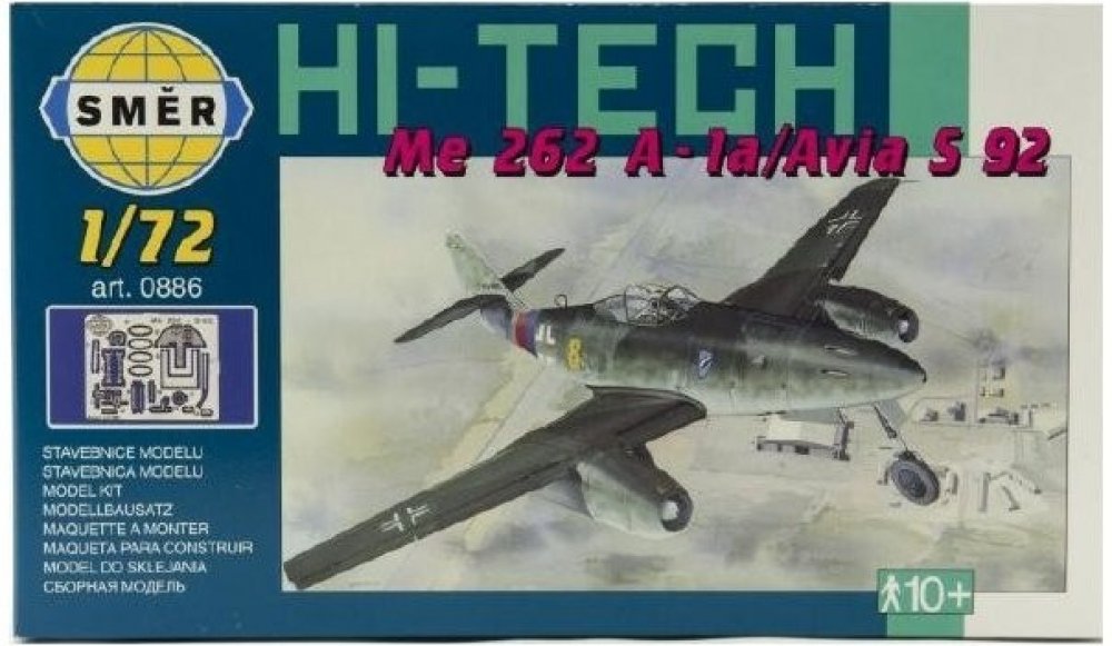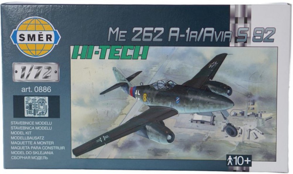 Stavebnice Směr - Messerschmitt Me 262 A-1 a Hitech oblíbený model stíhacího letadla. Stavebnice obsahuje stručnou historii modelu, doporučené barvy dle typu letadla, samolepky s popisem rozmístění, návod na sestavení a technický popis reálného modelu. Lepidlo a barvy nejsou součástí balení.