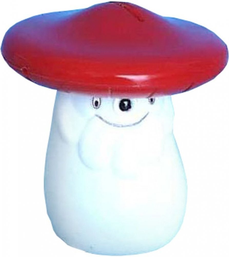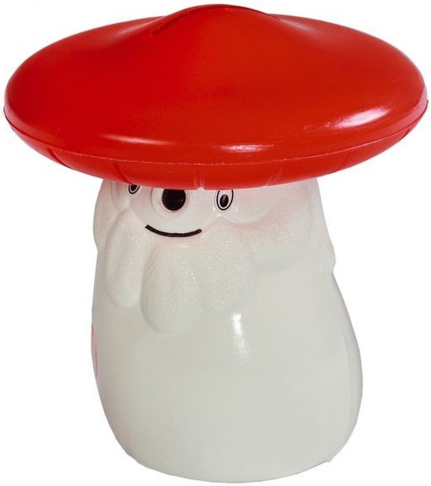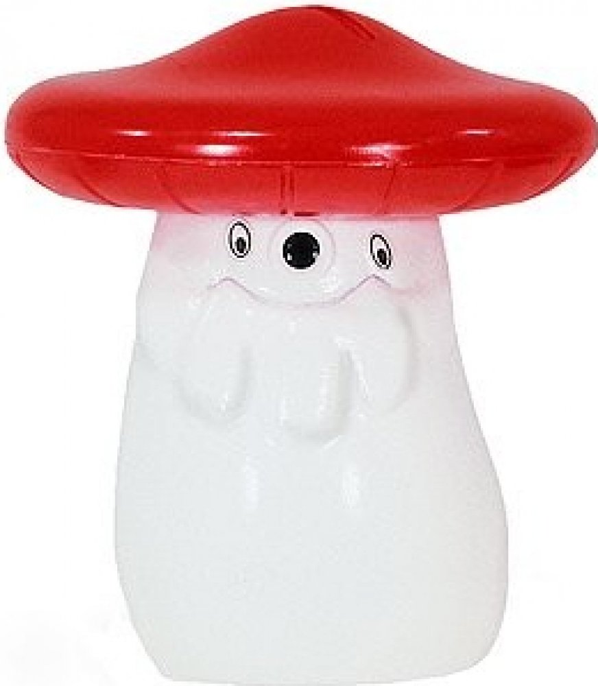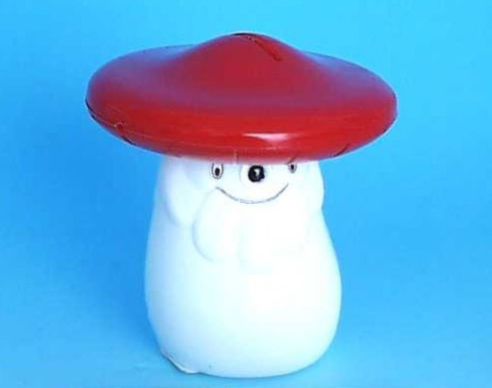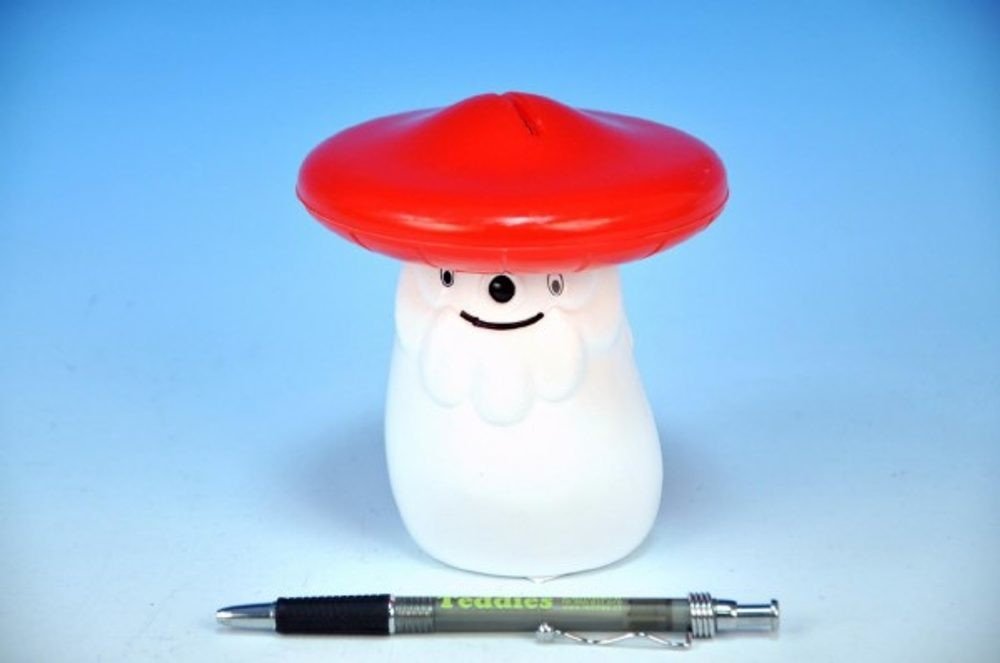 Dětská pokladnička (kasička) - Muchomůrka. Plastová pokladnička v podobě červené muchomůrky s odnímatelným kloboukem.