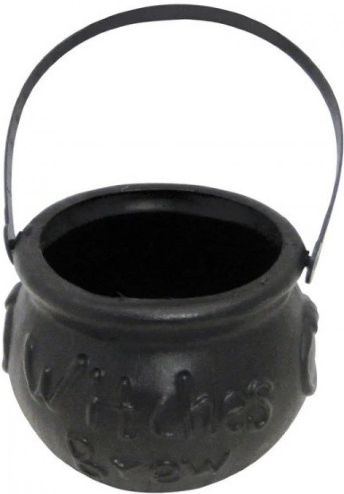Každá správná čarodějnice má doma tento kotlík na vaření lektvarů, koště, černou kočku, žáby a bradavici na velkém nose. A proto tento malý černý plastový čarodějnický kotlík s rukojetí nesmí chybět na čarodějnické párty jako doplněk výzdoby. Využijí ho také děti na halloweenské či čarodějnické párty pro sběr sladkostí. Velikost : 14 x 10 cm