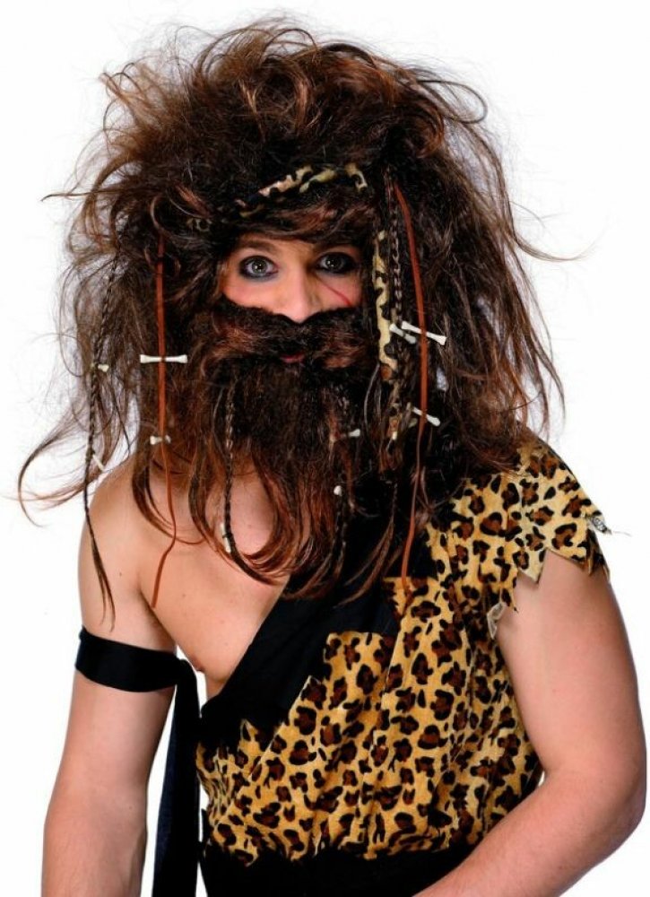 Paruka Pravěk hnědá + vousy