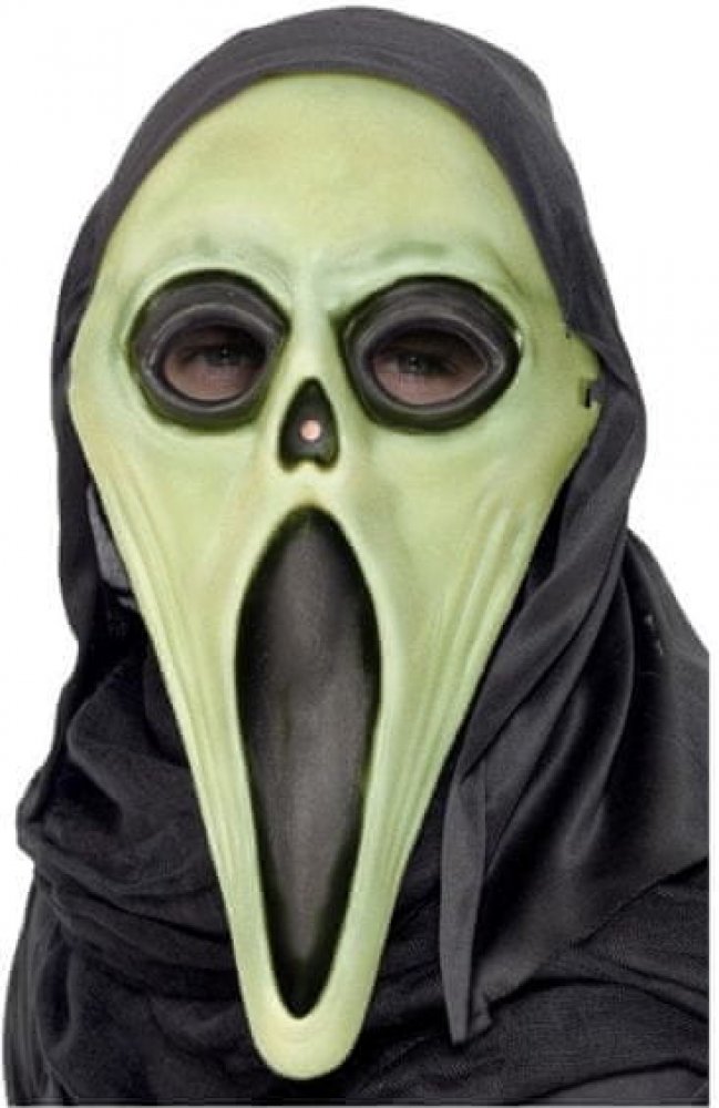 Karnevalová maska pro Vaši dokonalou image. Tato černobílá maska s kapucí svítí ve tmě (oblečení není součástí dodávky). Je ideální doplněk pro váš děsivý kostým na Halloween nebo na maškarní párty.