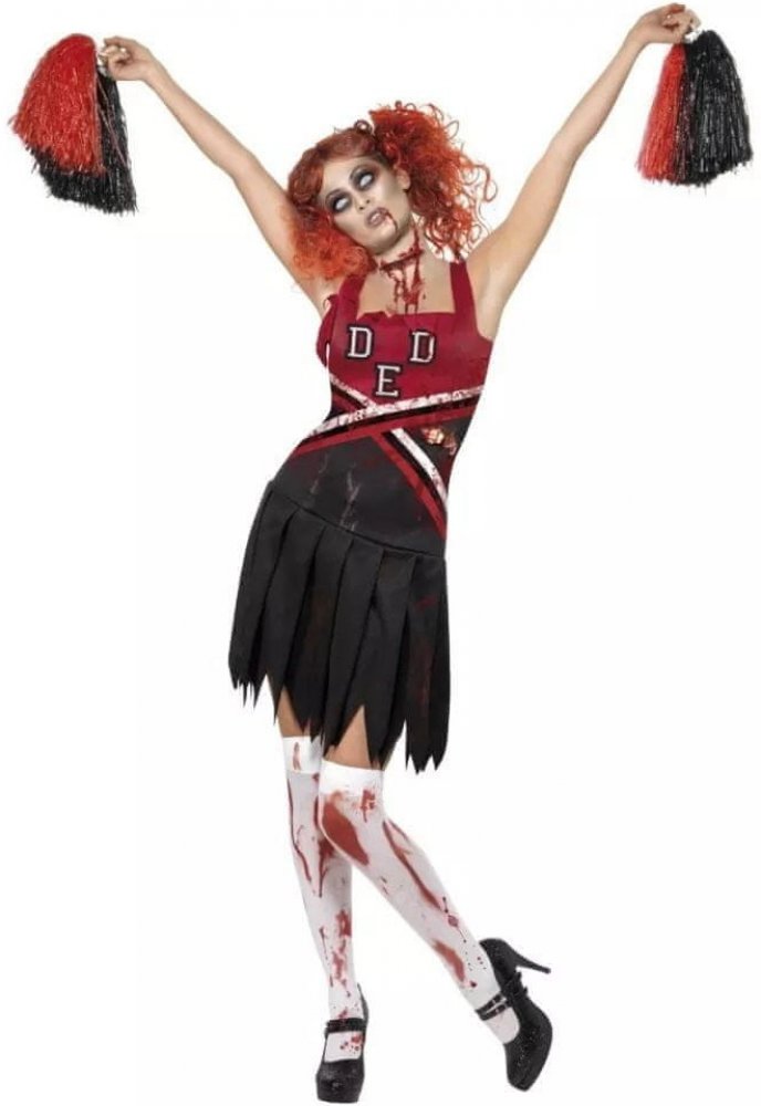 Proměňte se ve strašidelnou roztleskávačku z noční můry! Tento kostým zombie roztleskávačky zahrnuje šaty s autentickým potrhaným efektem a krvavými skvrnami, které dodají děsivý vzhled. Součástí kostýmu jsou také stylové pompomy, které dotváří dokonalý hororový outfit. Ideální volba na Halloween, hororové párty nebo tematické akce. Pro ještě děsivější efekt doporučujeme doplnit make-upem zombie, ...