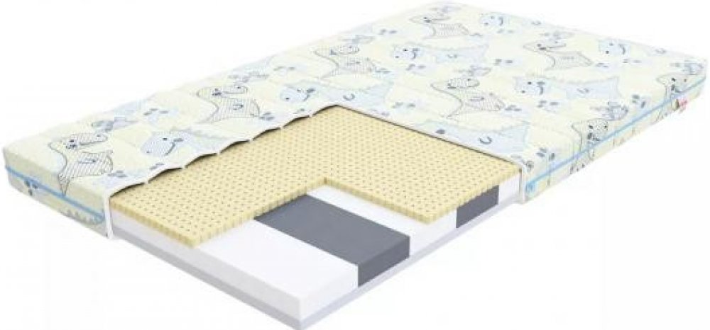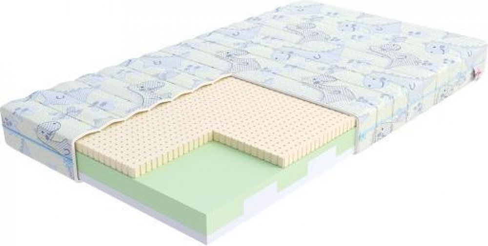 - Latex: má široké spektrum antialergických vlastností, což zamezuje rozvoji plísní, roztočů a hub. Latex se vyznačuje vysokou elasticitou a je trvanlivý, takže jej lze používat po mnoho let bez viditelných změn jeho struktury a vlastností. Vrstva perforovaného latexu se přizpůsobí tvaru těla a zajistí účinnou cirkulaci vzduchu během spánku. Pokaždé, když se dítě během spánku pohne, latexová vrstva se stlačí a roztáhne, což způsobí transport vzduchu ve vnitřních kanálech.
